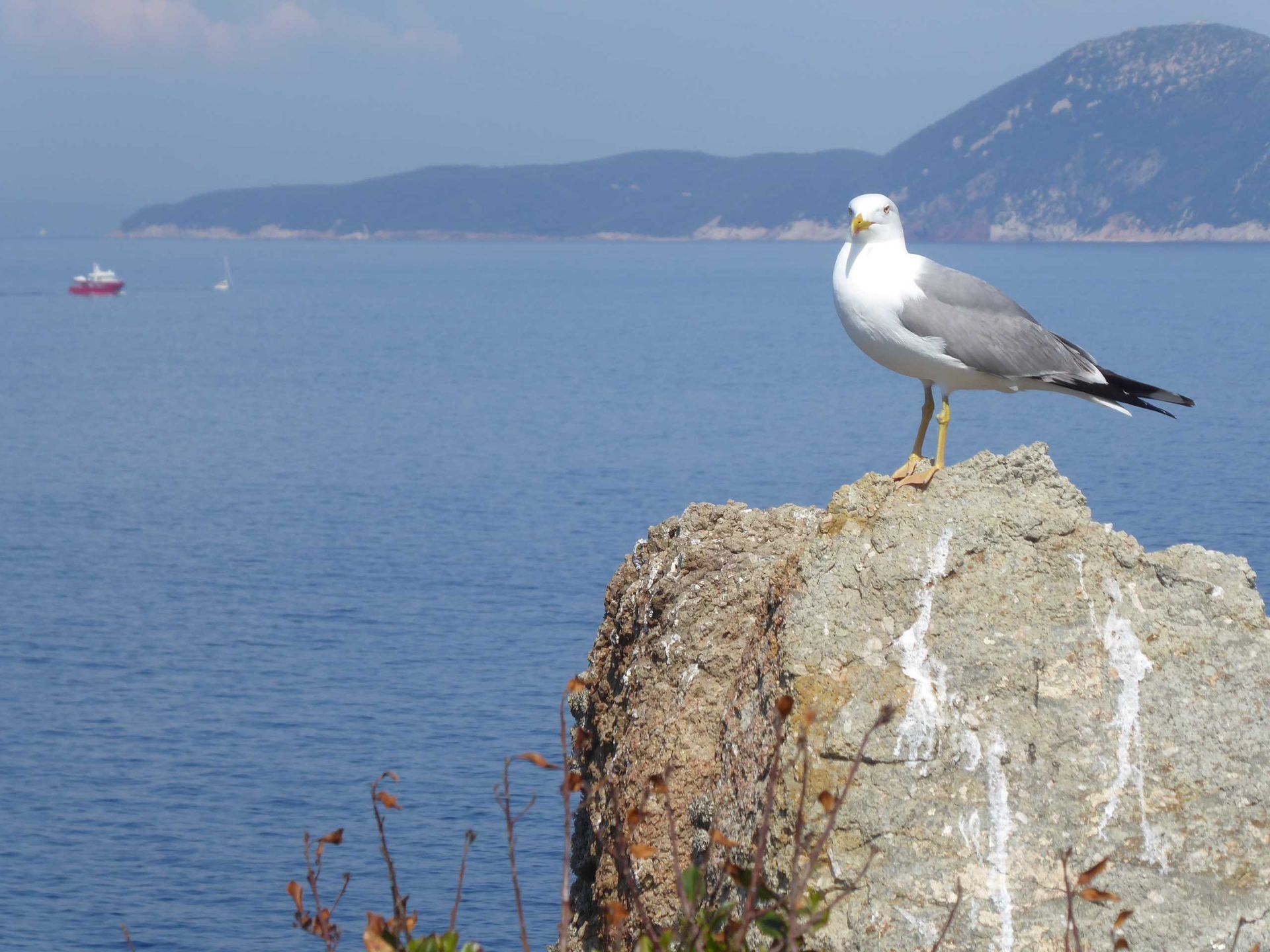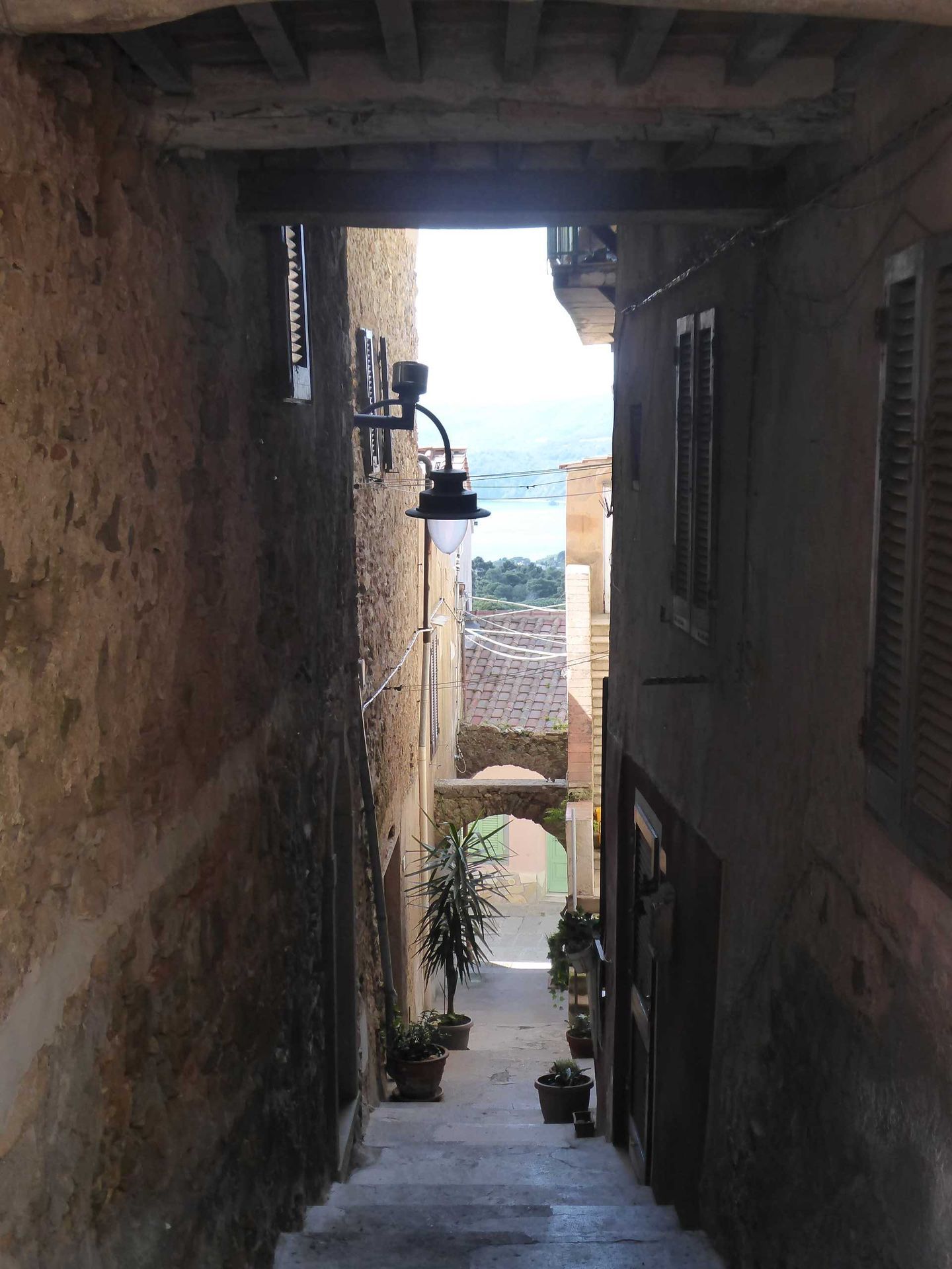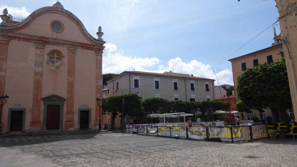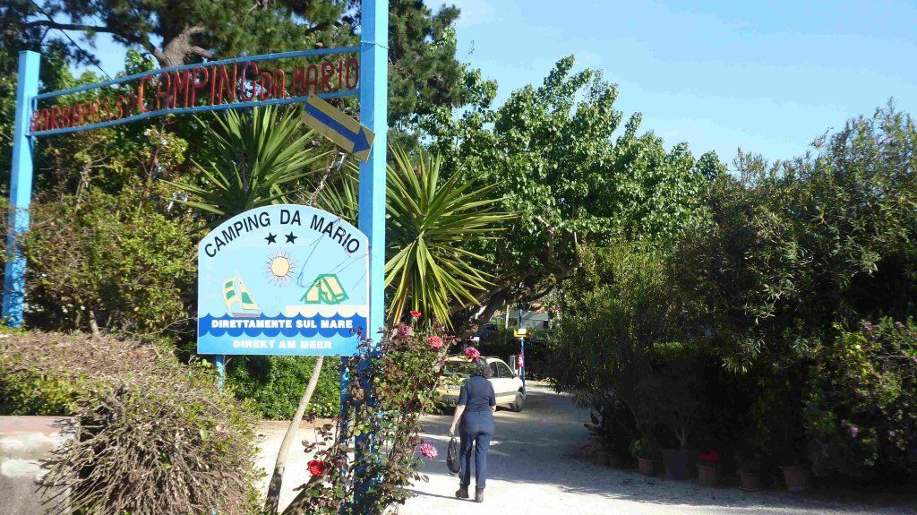 Wir fahren weiter und richten uns in Porto Azzurro bei Da Mario ein. Etwas später kommt ein Schweizer an und stellt seinen Bus so in den Weg, dass niemand mehr durchgehen und wir nicht hinausfahren könnten. Er hebt zum Gruß den Zeigefinger und verschwindet mit Hund. Natürlich kann ich mir eine Bemerkung dazu nicht verkneifen und das findet er gar nicht toll. Ich hätte ja sehen können, es sei ja klar, dass … Es gibt ein langes Palaver und er erzählt und erzählt, wir hören zu und trennen uns in Minne. Ja, er gehört zu der Spezies Platzhirsch. Genau in der Mitte des Platzes installiert er sich und lobt seine Rücksichtnahme. Er „schnurrt“ mit allen Schweizern und Deutschen und will alles wissen. Er folgt uns sogar ins Restaurant und fragt neugierig, was wir essen. Wir nehmen es sportlich. Vorbeigehende quatscht er an, sitzend auf seinem Sessel und eine stinkende Zigarillo rauchend. Man kommt sich vor wie ein Bittsteller. Aber er weiss auch viel von der Gegend und weist uns auf den Mercato von Samstagmorgen hin. Natürlich gehen wir zu Fuss hin, weil wir so einmal kein Parkproblem haben.