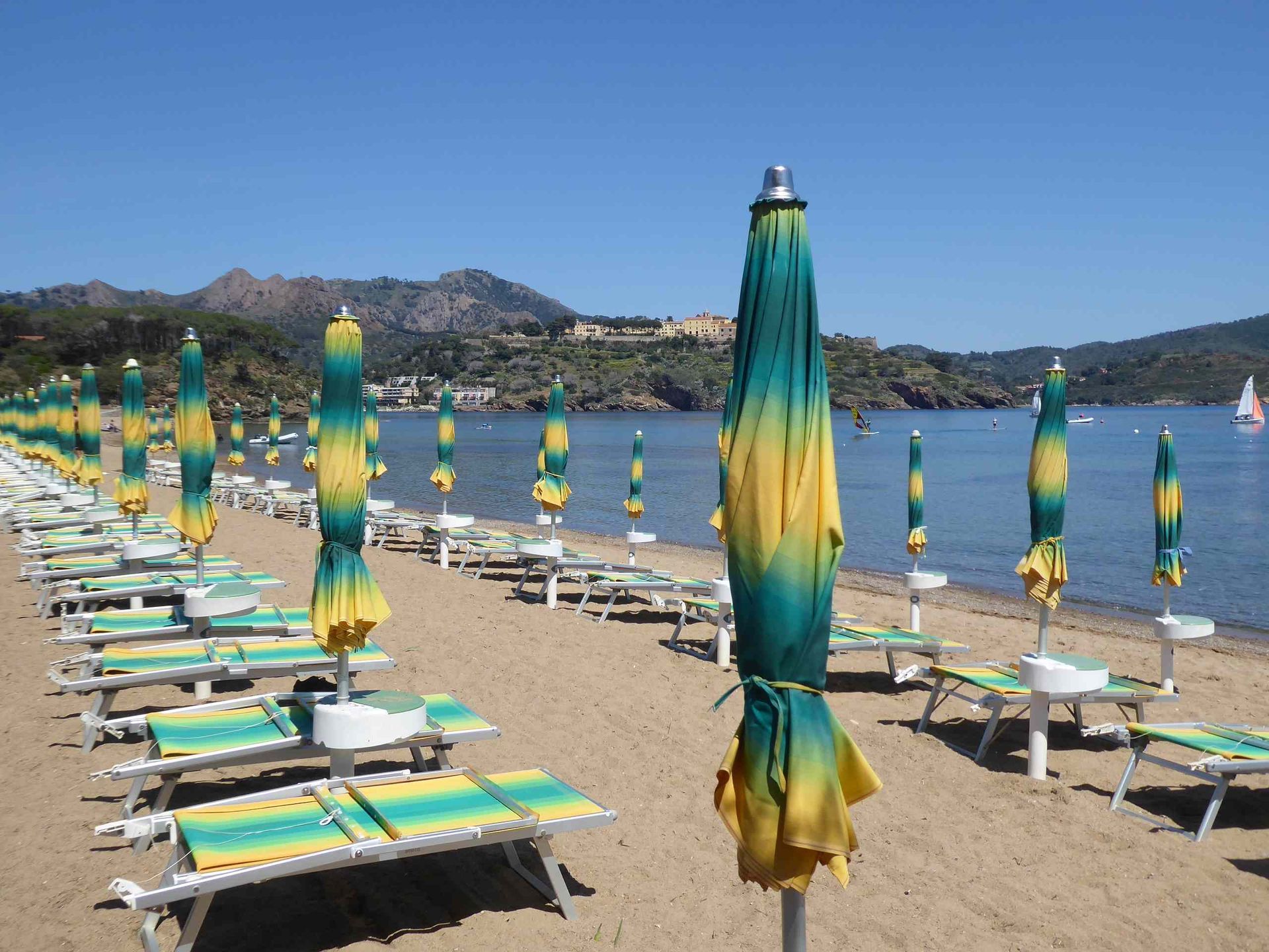 Auf diesem Zeltplatz und am Barbarossastrand war Hans vor 57 Jahren mit seiner Klasse 5Ta auf der zweiten Maturareise (ohne Lehrer!), da kommen alte Erinnerungen hoch. Z.B. konnte er mit einem Immobilienhai, der mit Segelschiff und Privatflugzeug auf Elba war, zurück in die Schweiz fliegen, nachdem alle Kollegen noch länger bleiben wollten und er einen Termin für die Mandeloperation hatte.