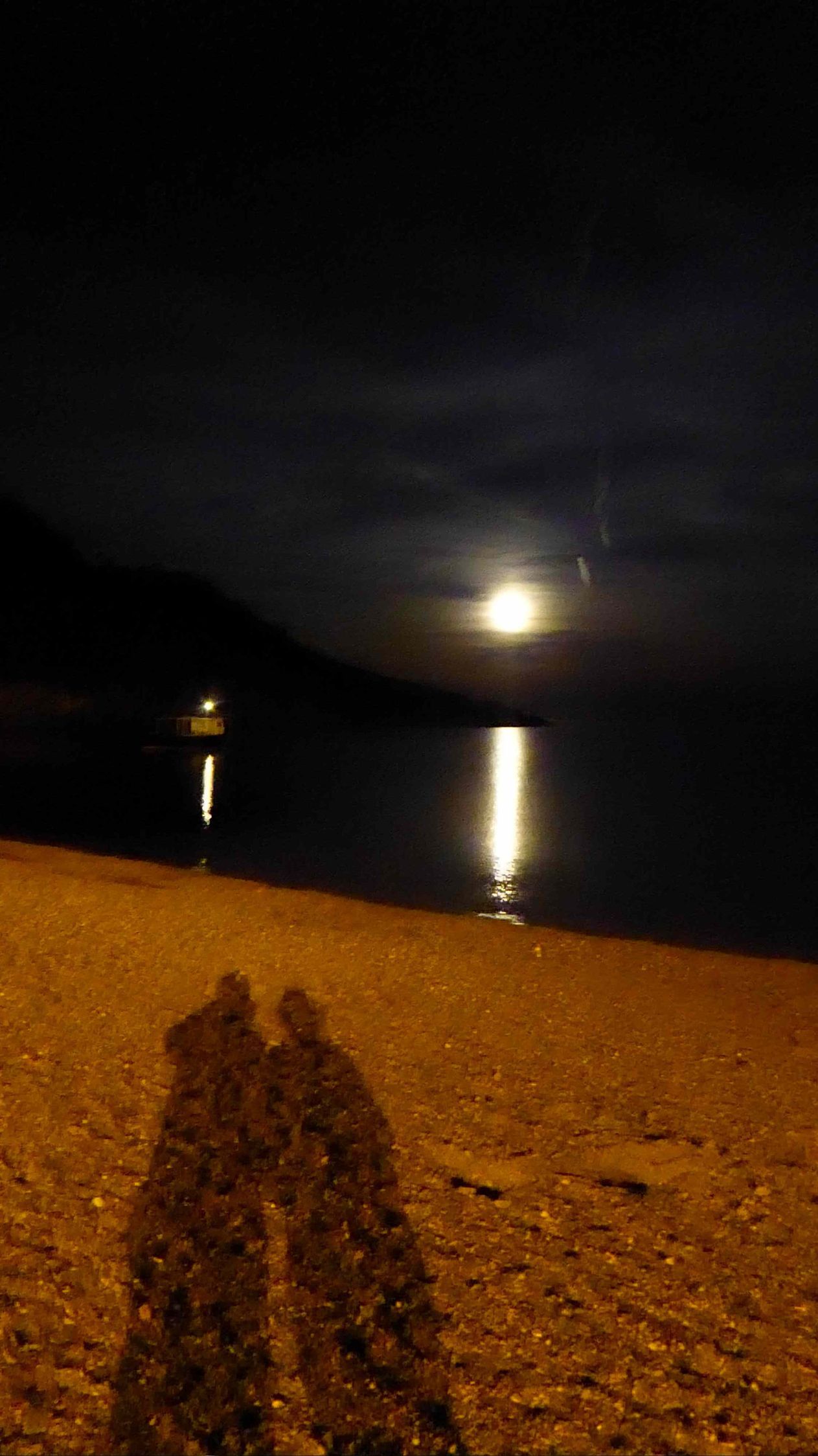 Über ein ganz enges Wanderwegli „kratzen“ wir uns ans Meer. Als es wirklich nicht mehr weitergeht, erkennen wir, dass uns das Navi wieder einmal in die Irre geführt hat. Die Wagenführerin würde mehr den Wegweisern nachfahren, aber der Lenker hat da oft seine eigenen Vorstellungen. Zurück und der Strasse nach finden wir dann Spiaggia di Ferrato, paradiesisch, ruhig, idyllisch, wundervoll. Wir stehen in einer Zeile mit zwei Paaren aus Bern und einem aus Tübingen und einer Prachtsaussicht. Nachts erwache ich: Die flitzenden Autos sind in Wirklichkeit die Wellen, die ans Ufer schlagen, frei nach Gottfried Benn: "Was schlimm ist: Nachts auf Reisen Wellen schlagen hören, und sich sagen, dass sie das immer tun" .