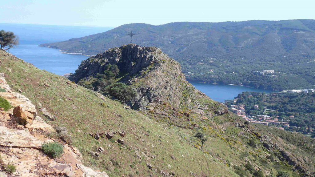Bei einer Abzweigung wählen wir den Weg unter dem Monte Castello durch. Wir hangeln uns an einem Stahlseil über die Felsen. Dann endlich geht der Weg etwas flacher und vor uns öffnet sich eine wunderbare Aussicht.