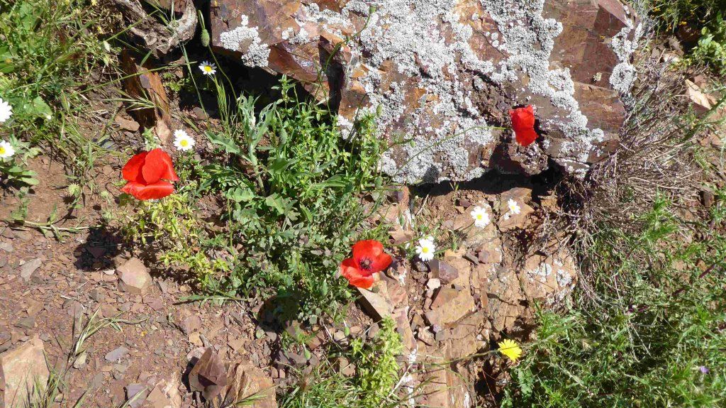 Also mit Hans wandern heisst auch immer sich Herausforderungen stellen und Abenteuer bestehen. Das ist ja auch nach meinem Gusto. Zuerst geht es der Strasse nach, heiß und etwas langweilig. Zwischenziel ist das Klösterchen Santuario Monserrat hinten hoch über einer Schlucht thronend. Von dort aus geht der Weg weiter, EE nur für erfahrene Wanderer. Eine Steilstufe, ein schmales Wegli, das immer steiler wird. Es ist rutschig und steil, nicht nach meinem Gusto. Die Bergziegen haben es da echt leichter. An zwei besonderen Stellen hat es zum Glück Seile um sich hochzuziehen. Es ist heiß, der Schweiss fliesst in Strömen.