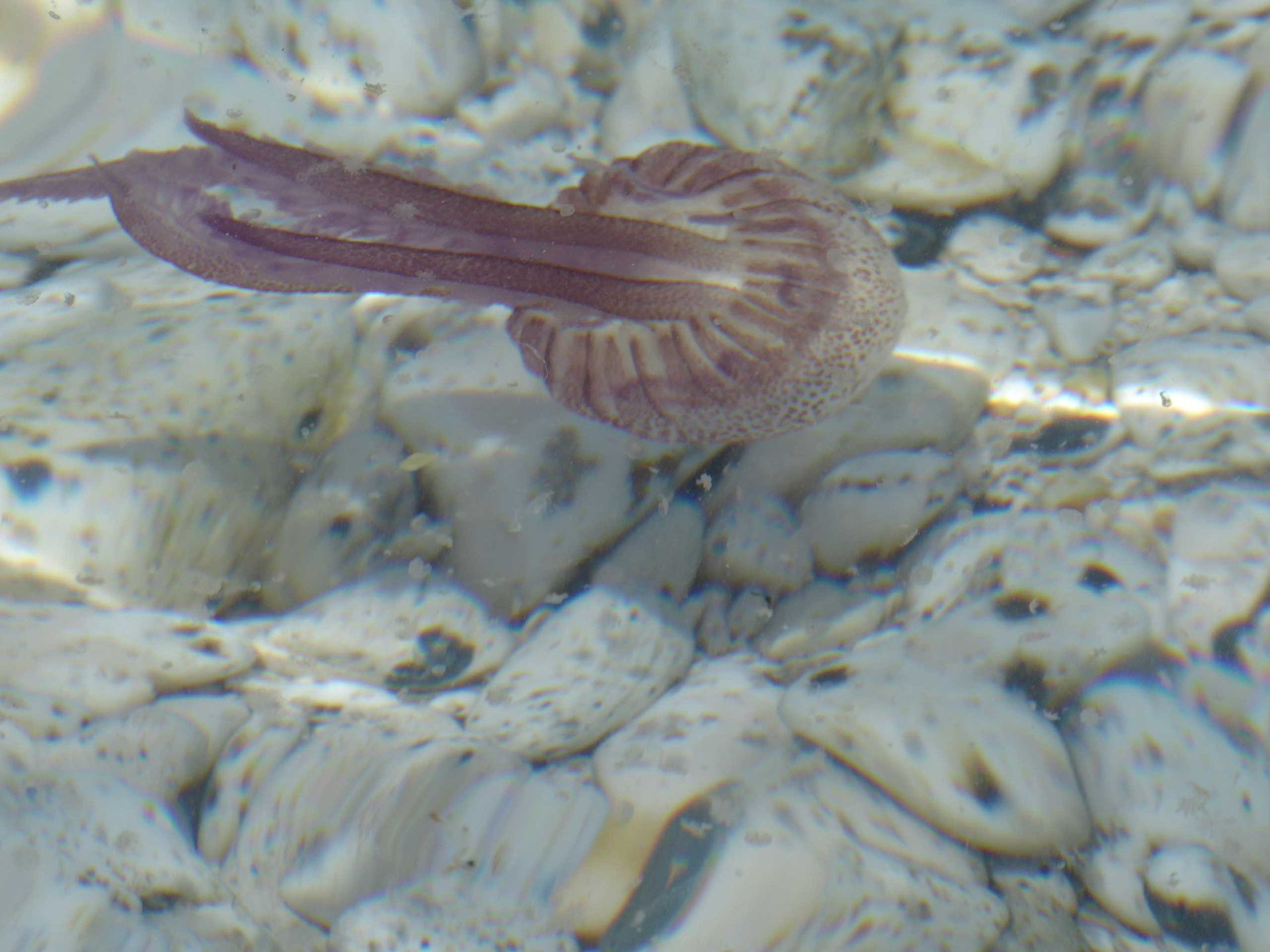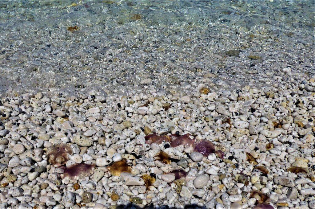 Eine Nachbarin schwärmte vom weissen Strand, Capo Bianco. Zwei Mal haben wir die Runde gedreht: Beim ersten Mal verpassten wir die Einfahrt in den Parkplatz um beim zweiten Mal zu realisieren, dass die Einfahrt zu niedrig ist. Nach einem längeren heissen Fussmarsch würden wir uns gerne erfrischen. Schöner weisser Strand, aber viele Quallen – nix mit baden.