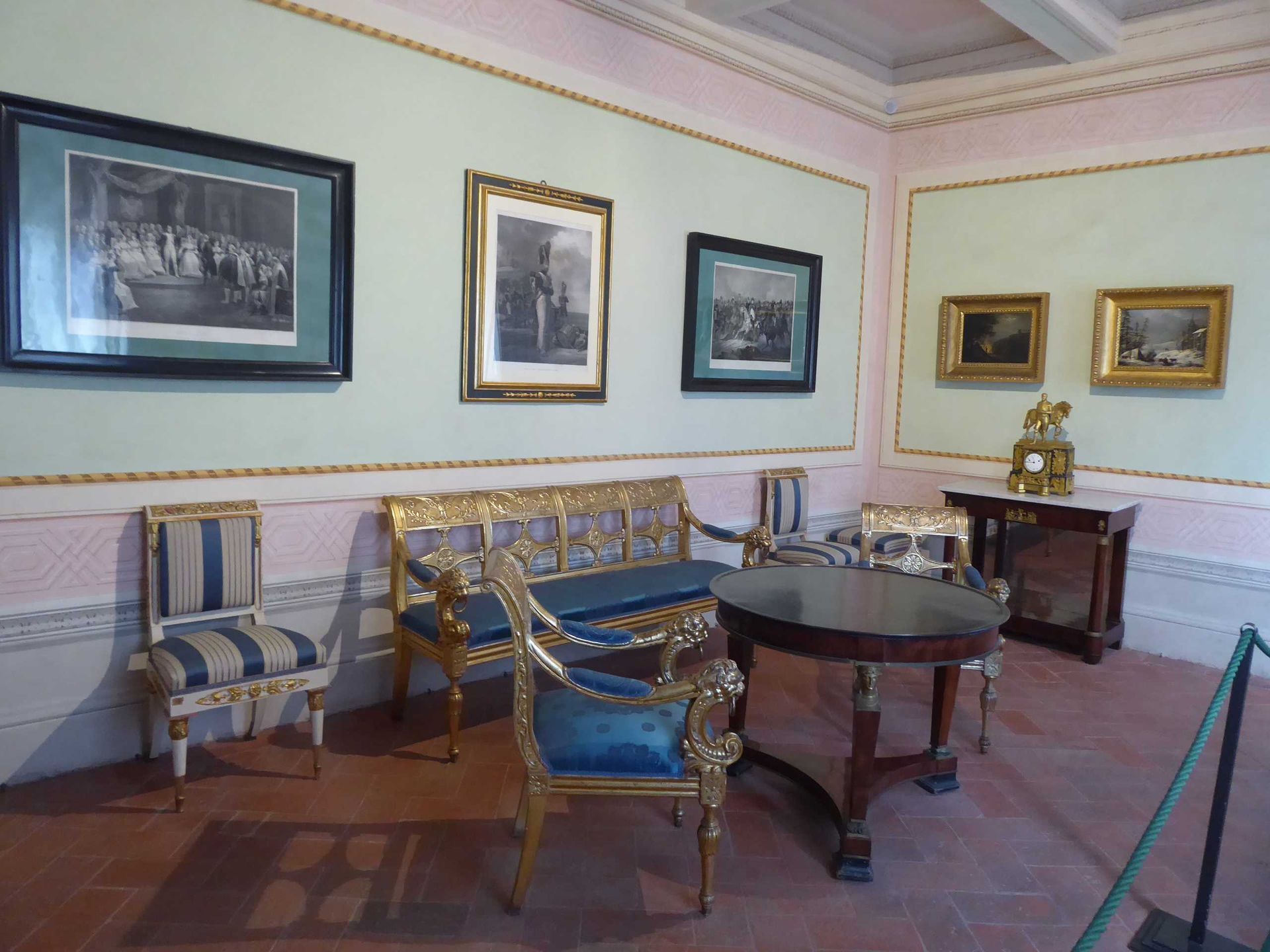 Ein Thema, das mich interessiert, ist Napoleon auf Elba. Nach der verlorenen Schlacht bei Leipzig wurde er nach Elba verbannt und dort begeistert empfangen. Er landete am 4. Mai 1814 in Portoferraio. Er wohnte in der Villa Mulini, ein Haus mit wunderbarem Ausblick auf Stadt und Meer. Später zog er um in ein Landhaus Villa San Martino. Am 26. Februar 1815 fuhr er ab nach Livorno und zog über die Via Napoleone zurück nach Paris.