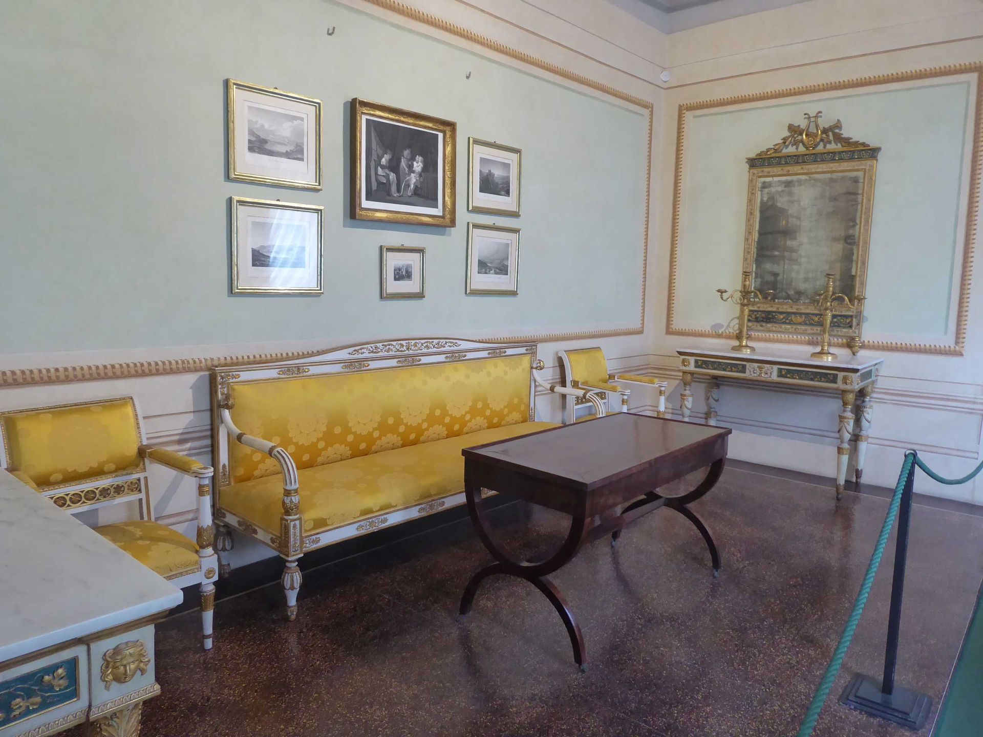 Zuerst besuchen wir das Landhaus. Es sind ein paar Räume mit schönen Möbeln, nichts mehr autentisch, aber aus dieser Zeit.