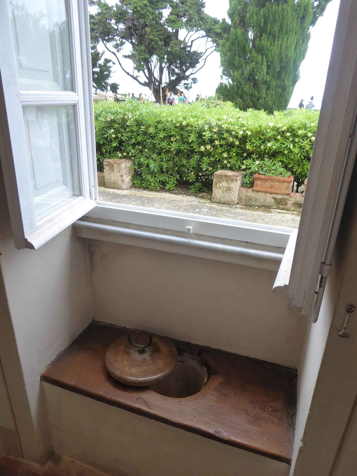 Im Garten suchen wir das Bänklein auf dem er sass und sein (selbstverschuldetes) Leid beklagte. Genau finden wir es nicht, aber die Aussicht aufs Meer ist grandios. Unter dem Bild steht: "Ich wünsche, dass meine Asche am Ufer der Seine ruht, inmitten des französischen Volkes, das ich so geliebt habe."