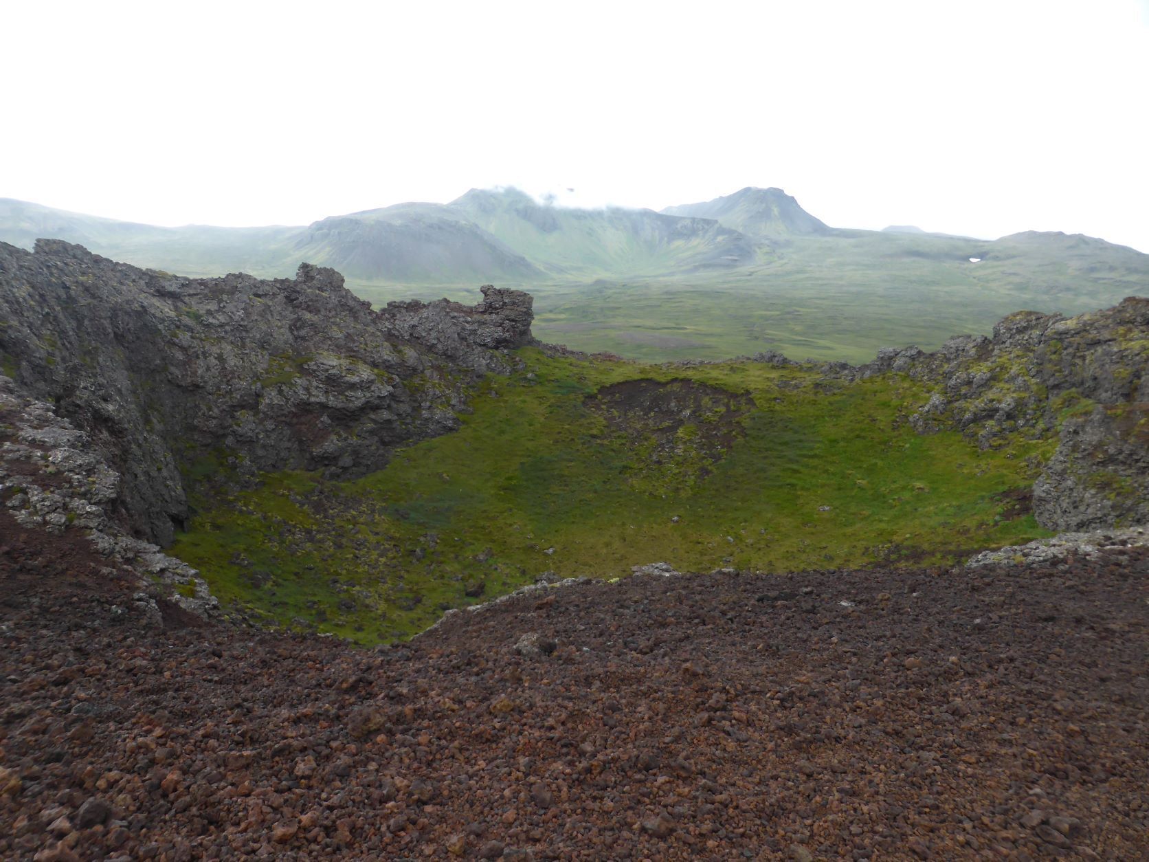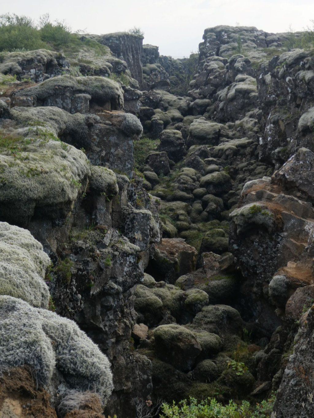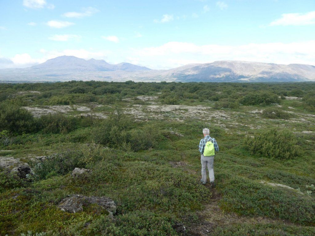 Wir finden einen wunderbaren Platz mit grosser Weitsicht. Dann erkunden wir den Platz der Versammlung. Es geht durch weite Lavalandschaft, die schon von Moos, den ersten Pflanzen, bewachsen ist. Die älteste Kirche ist wie alle andern auch geschlossen. Dann wandern wir durch den Kontinentalgraben zurück