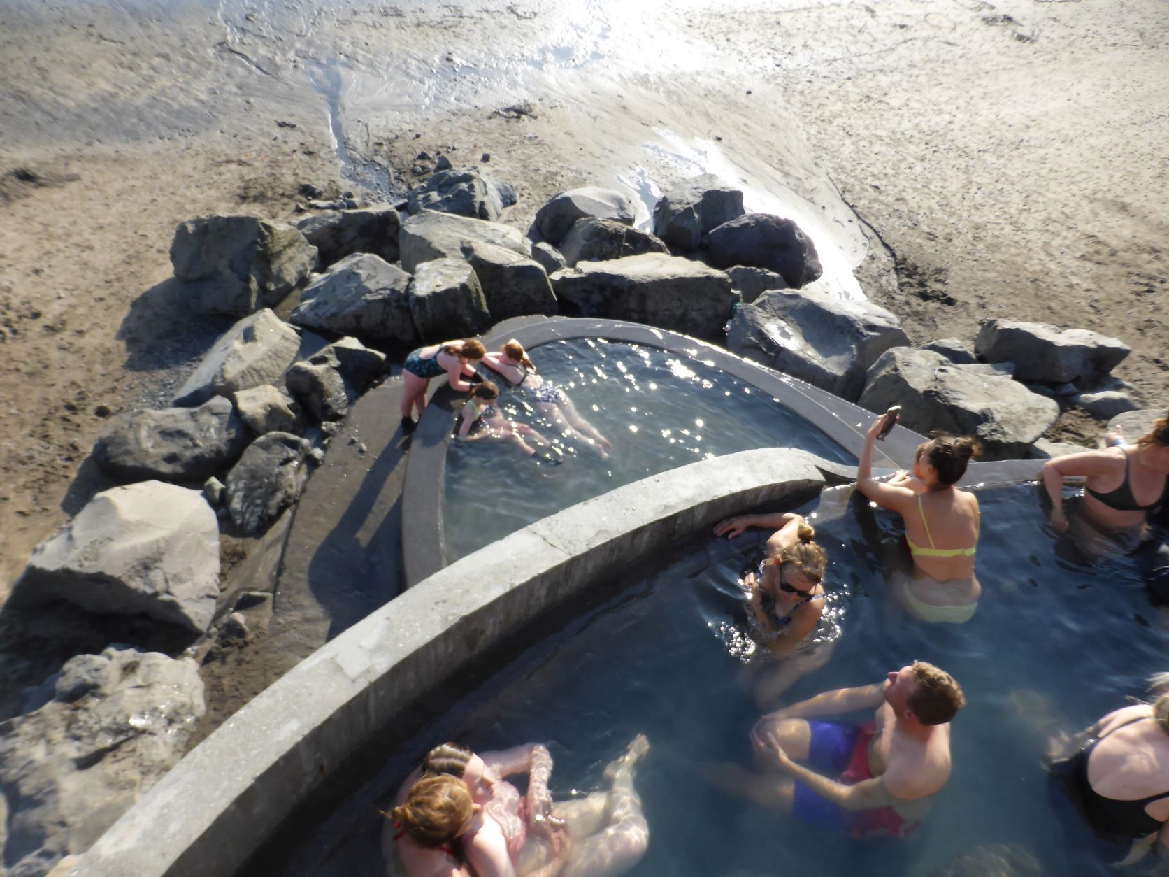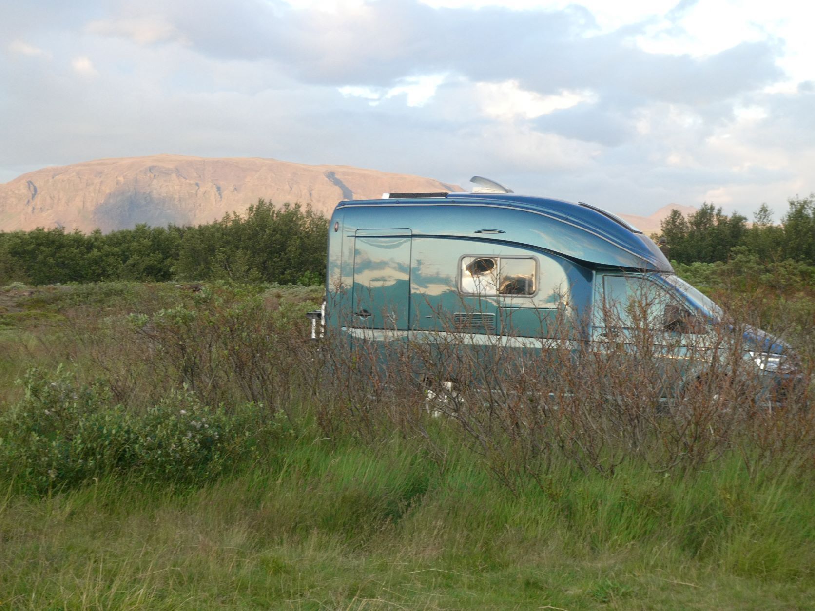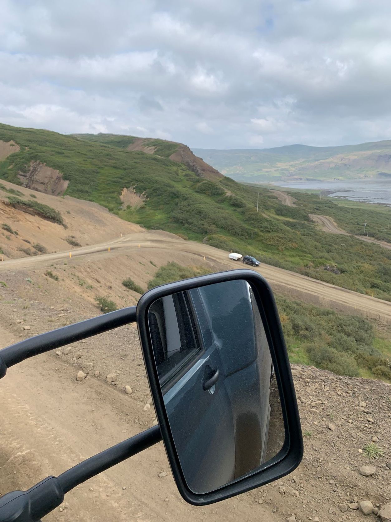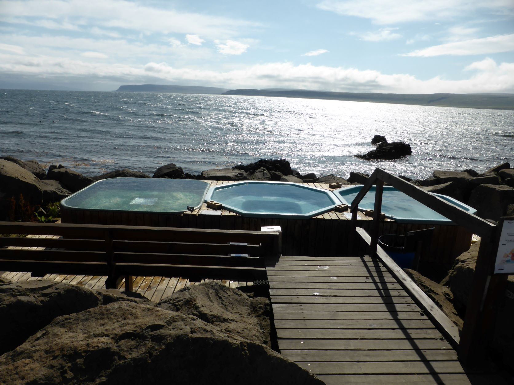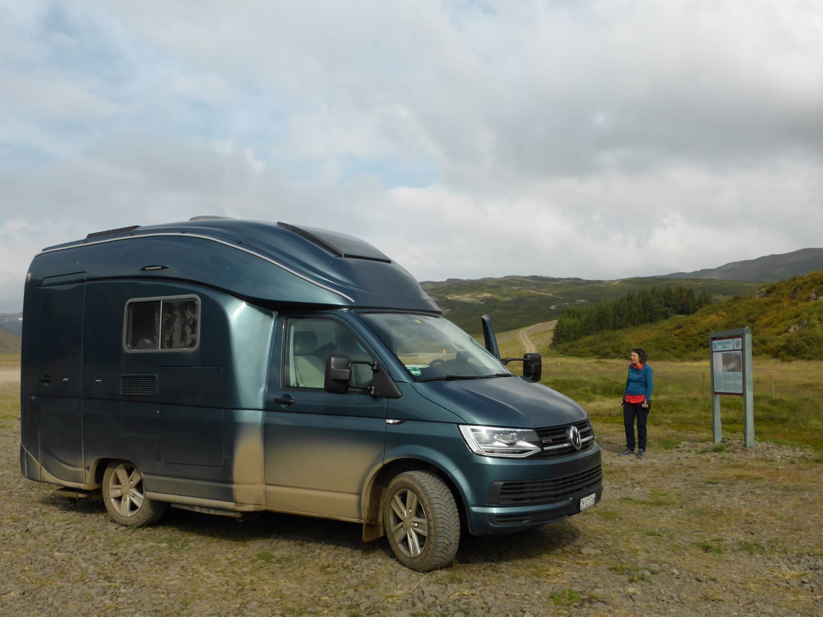 Nun fahren wir durch den Süden der Westfjorde, nochmals etwa 45km Schotterstrasse, rumpelig, dreckig, auf und ab, wunderbar mit atemberaubenden Stimmungen und Wolkenspielen. Wir sind froh, als wir wieder auf Asphalt landen. Um 17 Uhr sind wir in Laugar, da ist ein Bad schon fast Pflicht. Entgegen er Prognose ist schönes Wetter. Wir treffen eine junge Familie, er Berliner mit einem Master in Umweltwissenschaften, seine isländische Frau und seinen Sohn. Sie "flohen" aus Spanien wegen Corona.