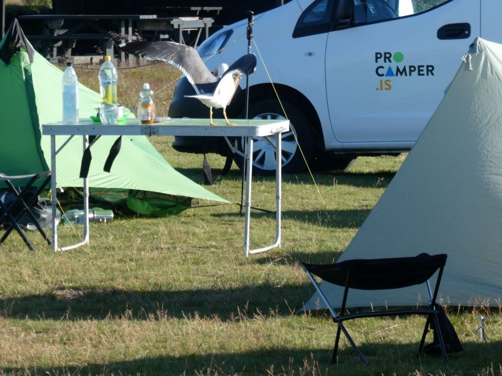 In Reykjanes gibt es ein Hotel, das aussen alt und abgewrakt aussieht aber einen ganz neuen und modernen Campingplatz hat. Nach einem Spaziergang zum Schotterpistenflughafen und Robbenbeobachtung lesen wir im Reiseführer, dass das Essen gut sein soll mit lokalen Produkten. Wir melden uns an und werden enttäuscht. Es gibt Schnipo, zwar fein, aber so gewöhnlich. Zudem haben wir schon tausende Schafe gesehen und noch kein Schwein.