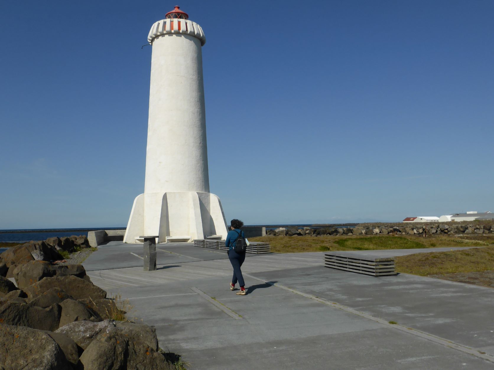 Am 13. August fahren wir nach Akranes. Auf dem Weg steigen wir in einen Hottube und kommen mit einer isländischen Familie ins Gespräch. Sie lebten einige Jahre in Berlin. Die Frau fand es dort so eng, weil es überall Häuser hat und ihm fehlte das Meer. So sind die Sichten verschieden - spannend. In Akranes stehen wir direkt hinter dem Deich. Die Stadt mutet ganz amerikanisch an, weite Strassen, niedrige Häuser und in den neueren Quartieren fehlen Bäume. Wir wandern zum weissen Strand, entdecken den Hotpot, Abkühlung im Meer und wir umrunden den Leuchtturm. Traumhafter Sonnenuntergang um 10vor10.