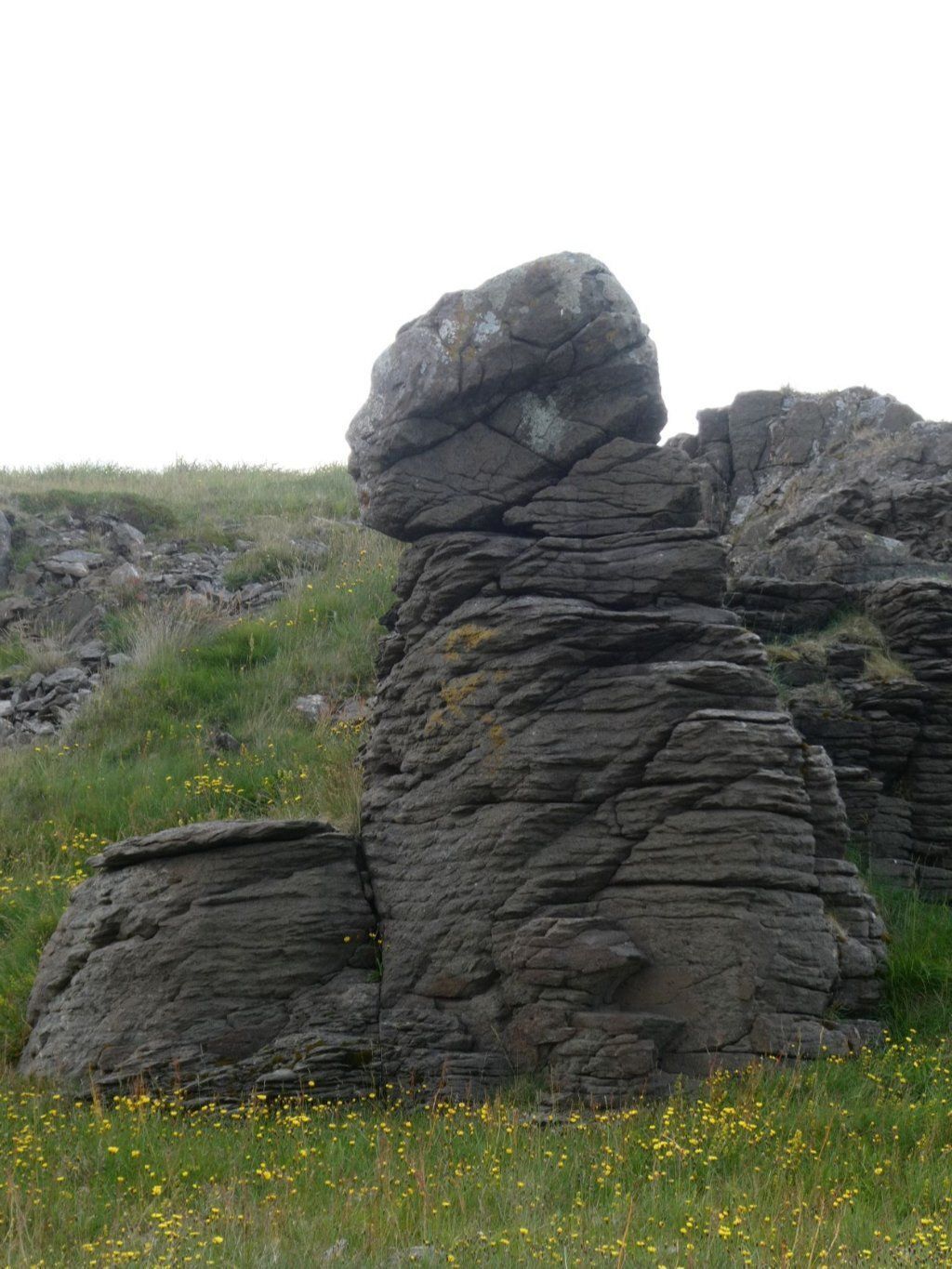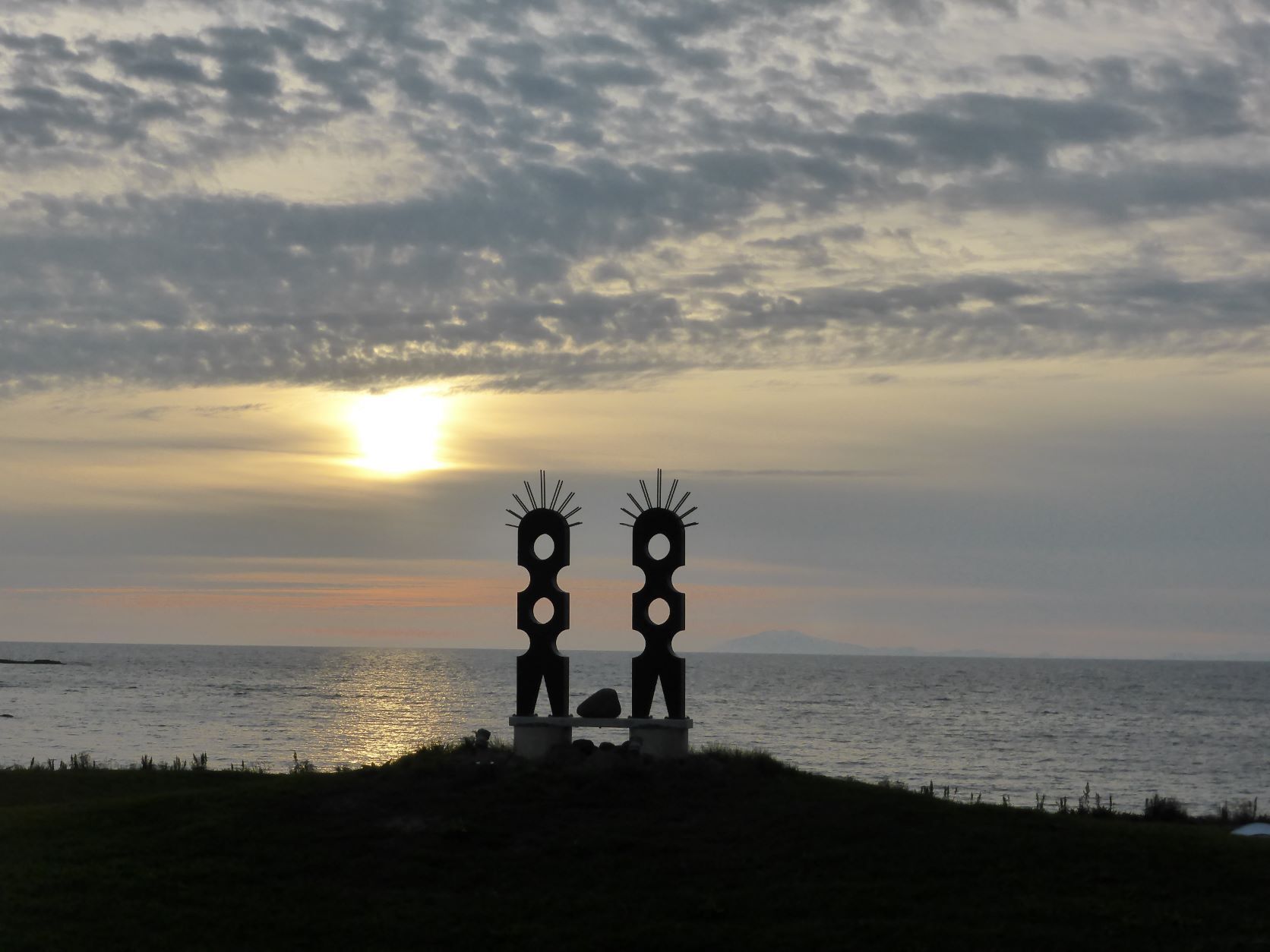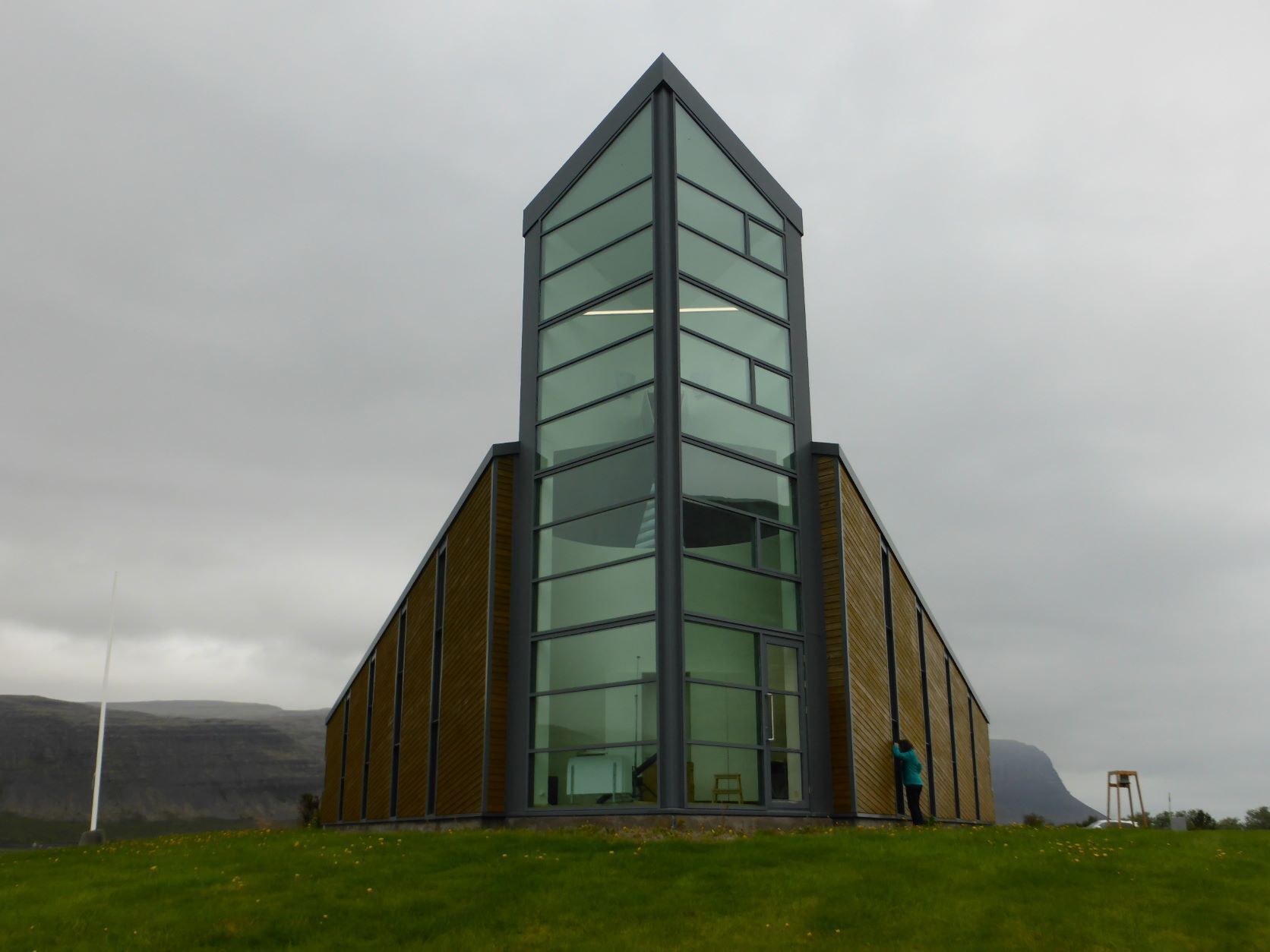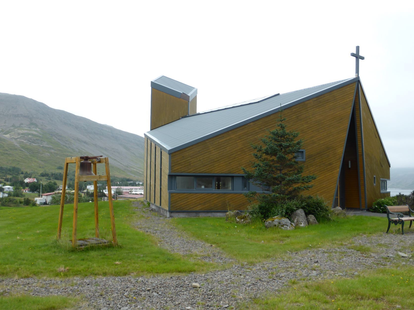 In Bildudalur wollte ich unbedingt zum Betonskulpteur, der ist aber nochmals 50km Schotter weit weg und das ist uns dann doch zuviel. Also kurven wir weiter über den nächsten Pass nach Talknafjördur und wie immer ist die Kirche mit dem Glasturm und dem Basaltaltar geschlossen, ein hochschwelliges Kulturangebot. Aber da ist noch der Isländer, der gut deutsch spricht, uns seine Geschichte in fünf Minuten erzählt und meint die Isländer seinen nicht so fromm. Warum bauen sie dann wohl überall Kirchen? Wir übernachten in Patreksfjördur an einem Platz mit Tisch und Bank, aber leider beginnt es zu regnen.