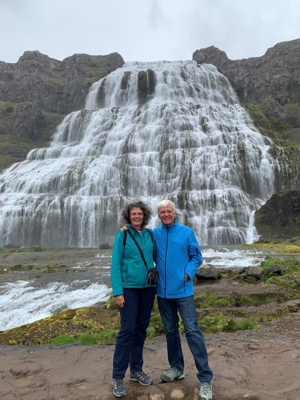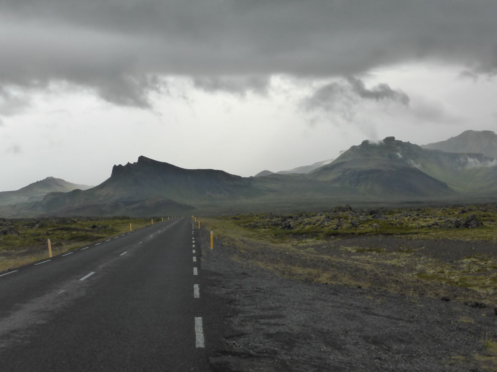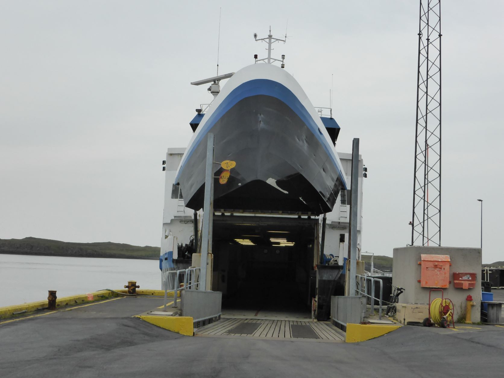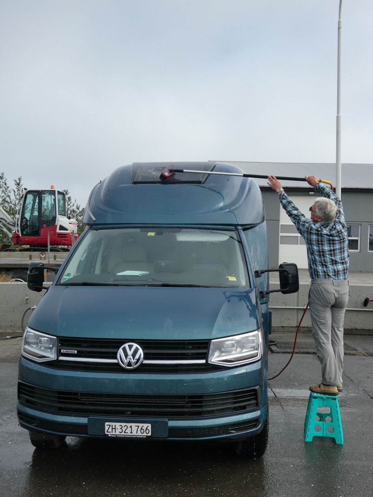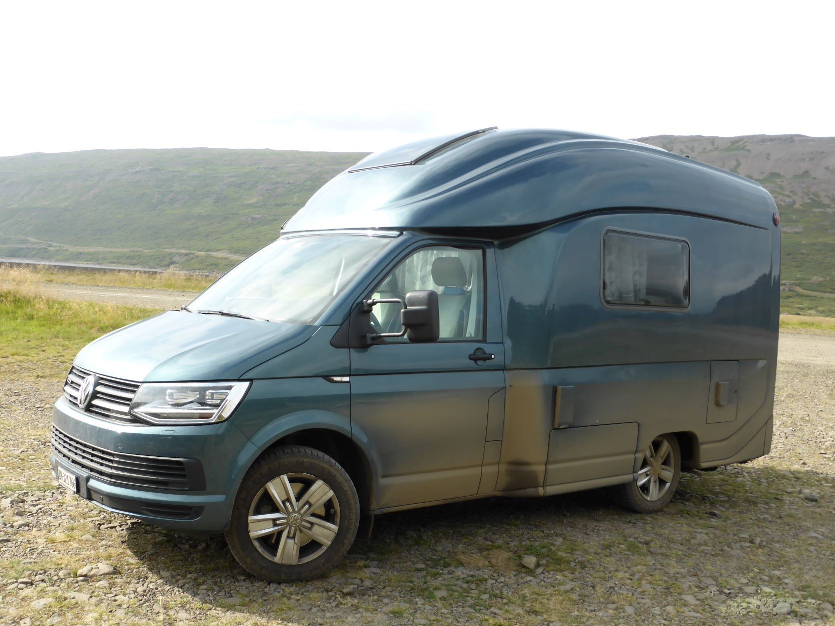 Wir möchten den Gletschervulkan Snaefellsjökull bestaunen. Und weil unser Wigwam schon dreckig und braun betoniert ist, nehmen wir die 67 km Schotterstrasse unter die Räder. Manchmal ist sie ganz gut und bei Waschbrett ist viel angenehmer, wenn man mit etwa 50 km/h darüber brettert. In Stykkisholmur fahren wir an den Hafen und spazieren auf den Hügel. Es gibt eine schöne Sicht auf den Hafen und die kleinen Schären. Nachdem Einkauf waschen wir das Auto. Das kann man in Island an jeder Tankstelle gratis tun - super bei solchen Strassen