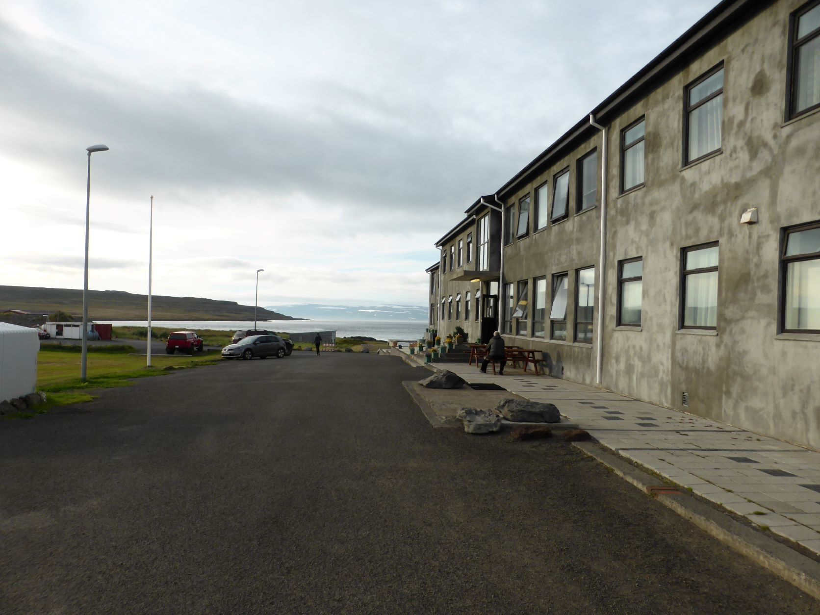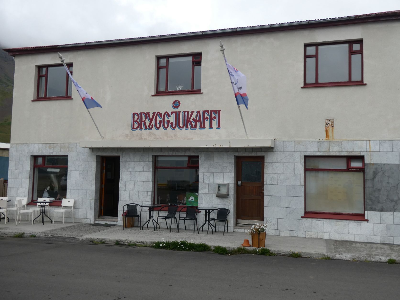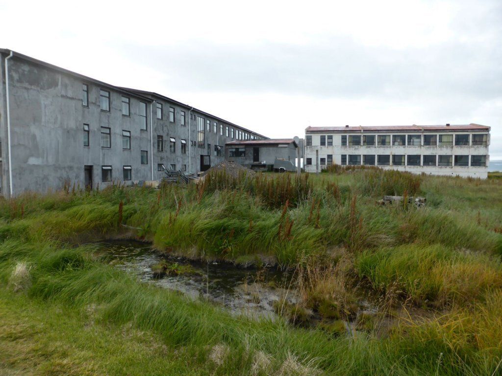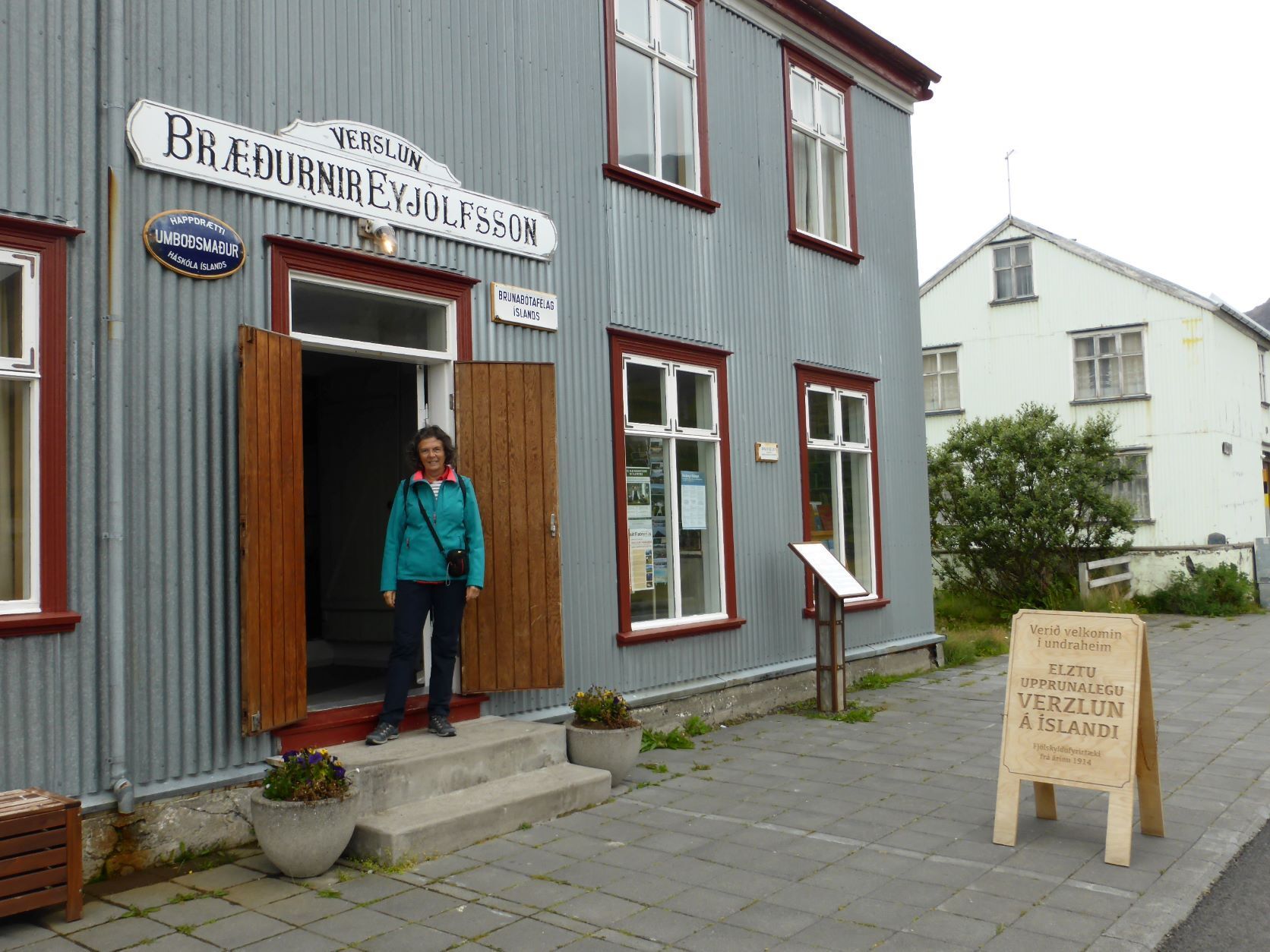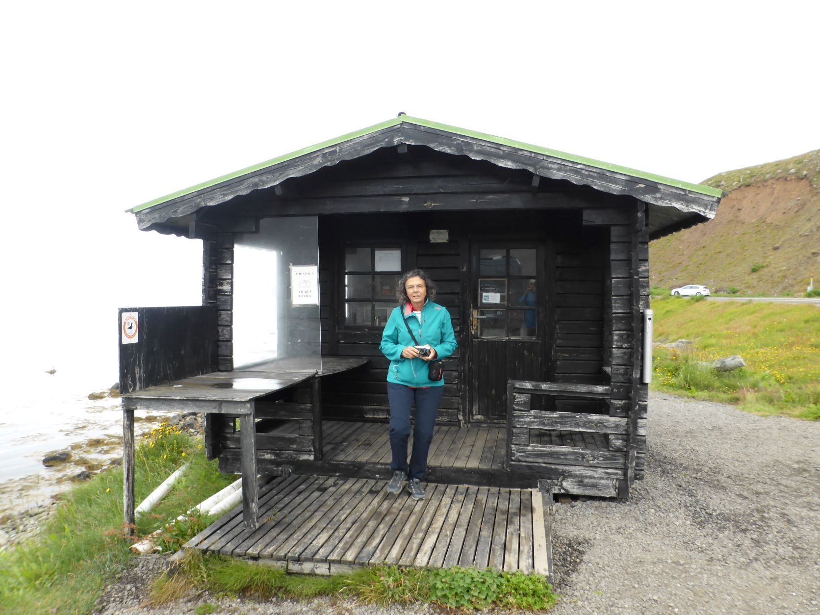 Schon länger wurde schlechtes Wetter angesagt und zum Glück war es immer besser. Die Tage sind um 13-15 Grad, aber mit der Sonne fühlt es sich an wie 20 Grad. Die Nächte sind auch nicht so kalt, nur etwa 2-3 Grad kühler. Aber heute Morgen sitzt der Nebel direkt auf unseren Köpfen. Nach einer Runde duch Isafjördur, die Kirche natürlich geschlossen, fahren wir nach Bolungarvik mit dem ältesten Hafen der Westfjorde. Aber es ist kalt und nass und das Freilichtmuseum mit den 3 Hütten verlassen, so fahren wir durch den grossen modernen Tunnel zurück und weiter noch durch einen Tunnel und die Breidadalsheidi nach Flateyri. Zuerst besuchen wir das Bryggjukaffi. Hans isst einen Bagel und ich wage das Experiment einer Fischsuppe. Sie ist ausgezeichnet. Das Dorf ist auch ein Freilichtmuseum, das harte Leben der Menschen Im Fisch Ende 19. und anfangs 20 Jh. ist sogar auf deutsch beschrieben. Im ältesten Laden und Handelsplatz ist heute ein Buchantiquariat eingerichtet. Die Leute bringen ihre gelesenen Bücher und können für 100ISK 1kg Bücher kaufen. Leider gibt es nur isländische. Aber da entdecken wir auch einen Stand mit neuen und sOgar deutschen. Also kaufen wir ein isländisches Kochbuch, ein Geschichtsbuch und ein Vogelbuch, allerdings für viel mehr als 100Kroner. Es ist ein Erlebnis.