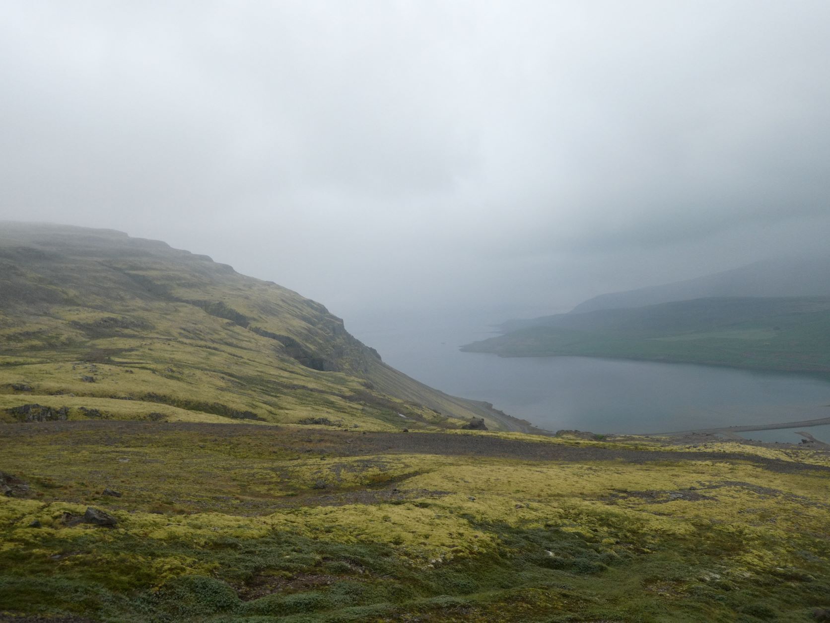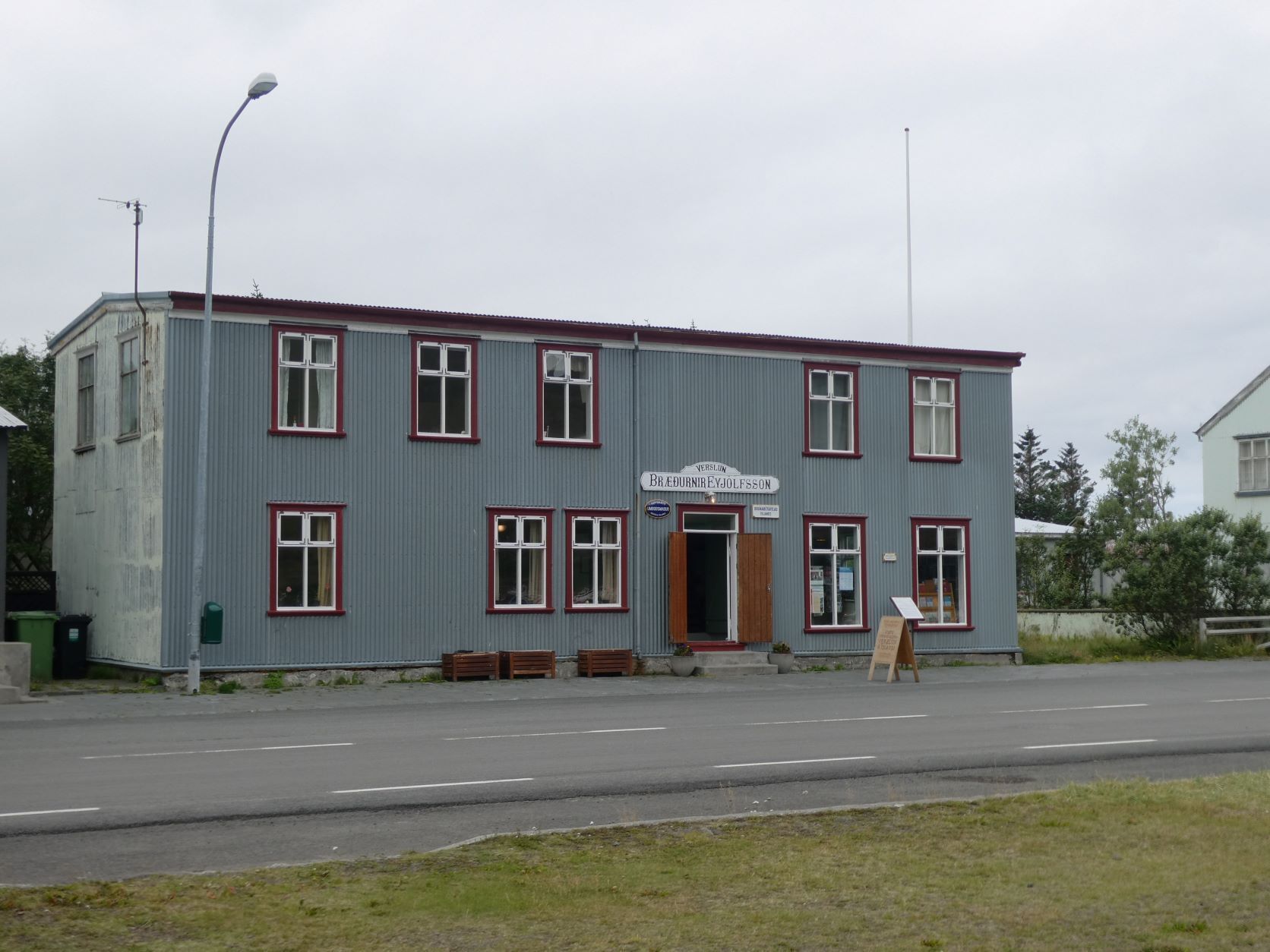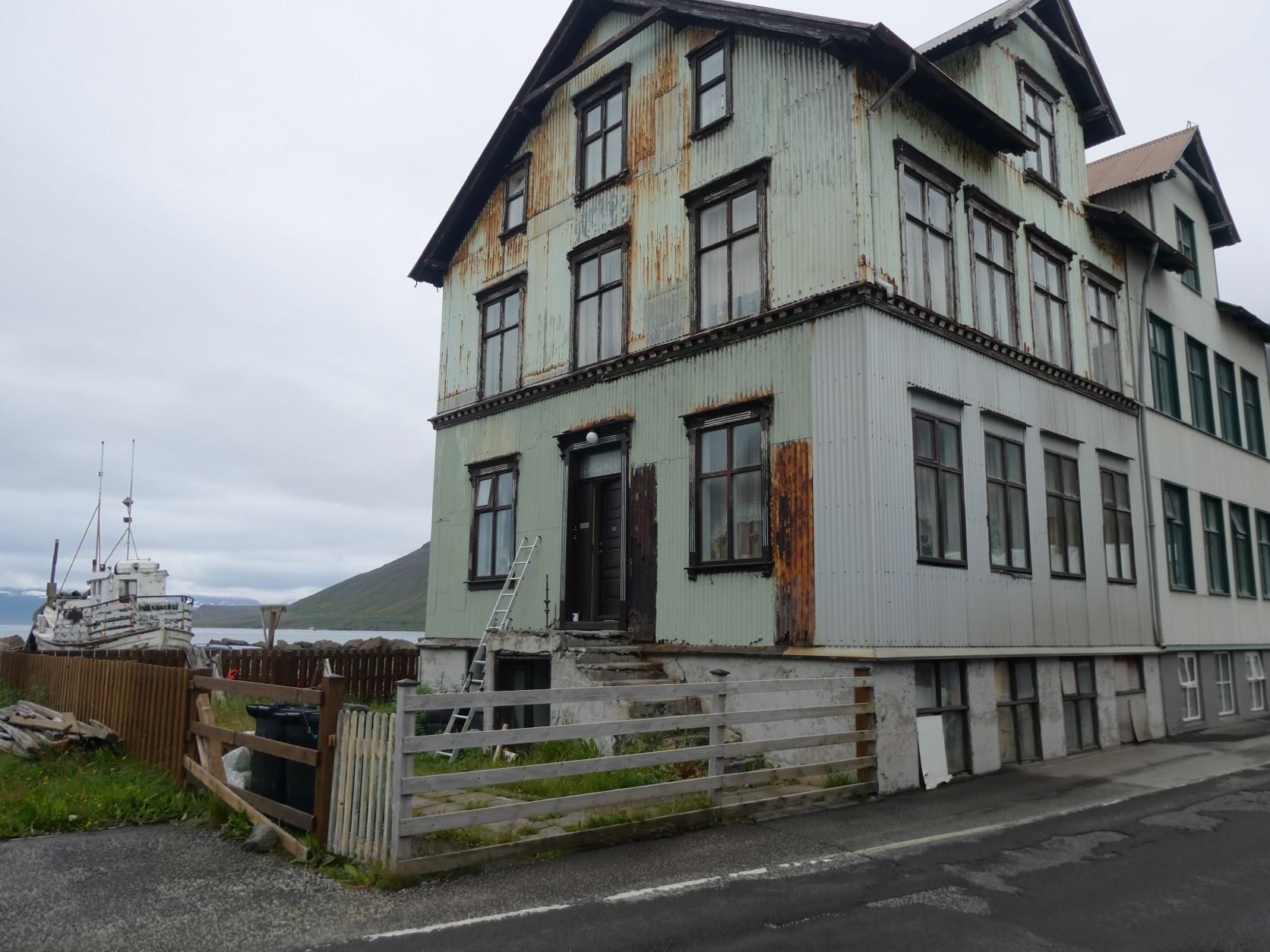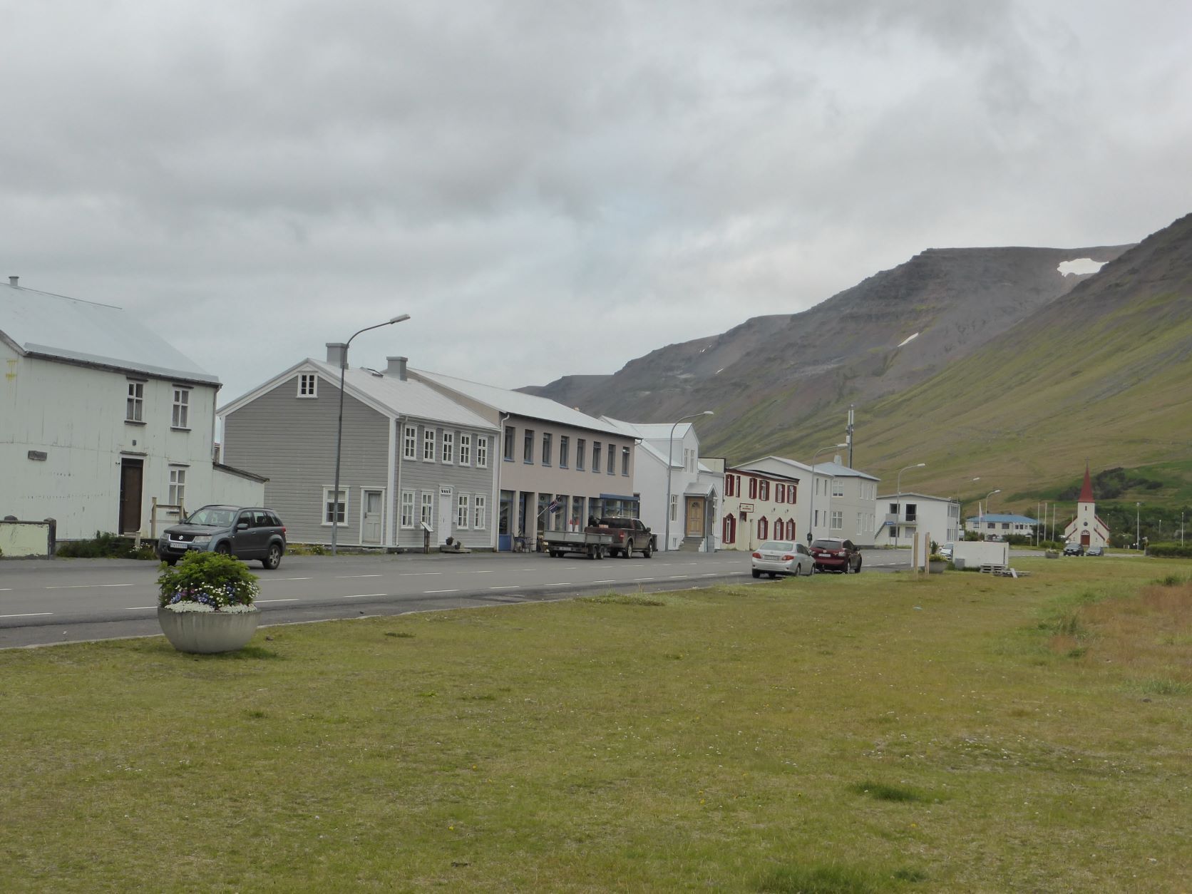 Schon länger wurde schlechtes Wetter angesagt und zum Glück war es immer besser. Die Tage sind um 13-15 Grad, aber mit der Sonne fühlt es sich an wie 20 Grad. Die Nächte sind auch nicht so kalt, nur etwa 2-3 Grad kühler. Aber heute Morgen sitzt der Nebel direkt auf unseren Köpfen. Nach einer Runde duch Isafjördur, die Kirche natürlich geschlossen, fahren wir nach Bolungarvik mit dem ältesten Hafen der Westfjorde. Aber es ist kalt und nass und das Freilichtmuseum mit den 3 Hütten verlassen, so fahren wir durch den grossen modernen Tunnel zurück und weiter noch durch einen Tunnel und die Breidadalsheidi nach Flateyri. Zuerst besuchen wir das Bryggjukaffi. Hans isst einen Bagel und ich wage das Experiment einer Fischsuppe. Sie ist ausgezeichnet. Das Dorf ist auch ein Freilichtmuseum, das harte Leben der Menschen Im Fisch Ende 19. und anfangs 20 Jh. ist sogar auf deutsch beschrieben. Im ältesten Laden und Handelsplatz ist heute ein Buchantiquariat eingerichtet. Die Leute bringen ihre gelesenen Bücher und können für 100ISK 1kg Bücher kaufen. Leider gibt es nur isländische. Aber da entdecken wir auch einen Stand mit neuen und sOgar deutschen. Also kaufen wir ein isländisches Kochbuch, ein Geschichtsbuch und ein Vogelbuch, allerdings für viel mehr als 100Kroner. Es ist ein Erlebnis.