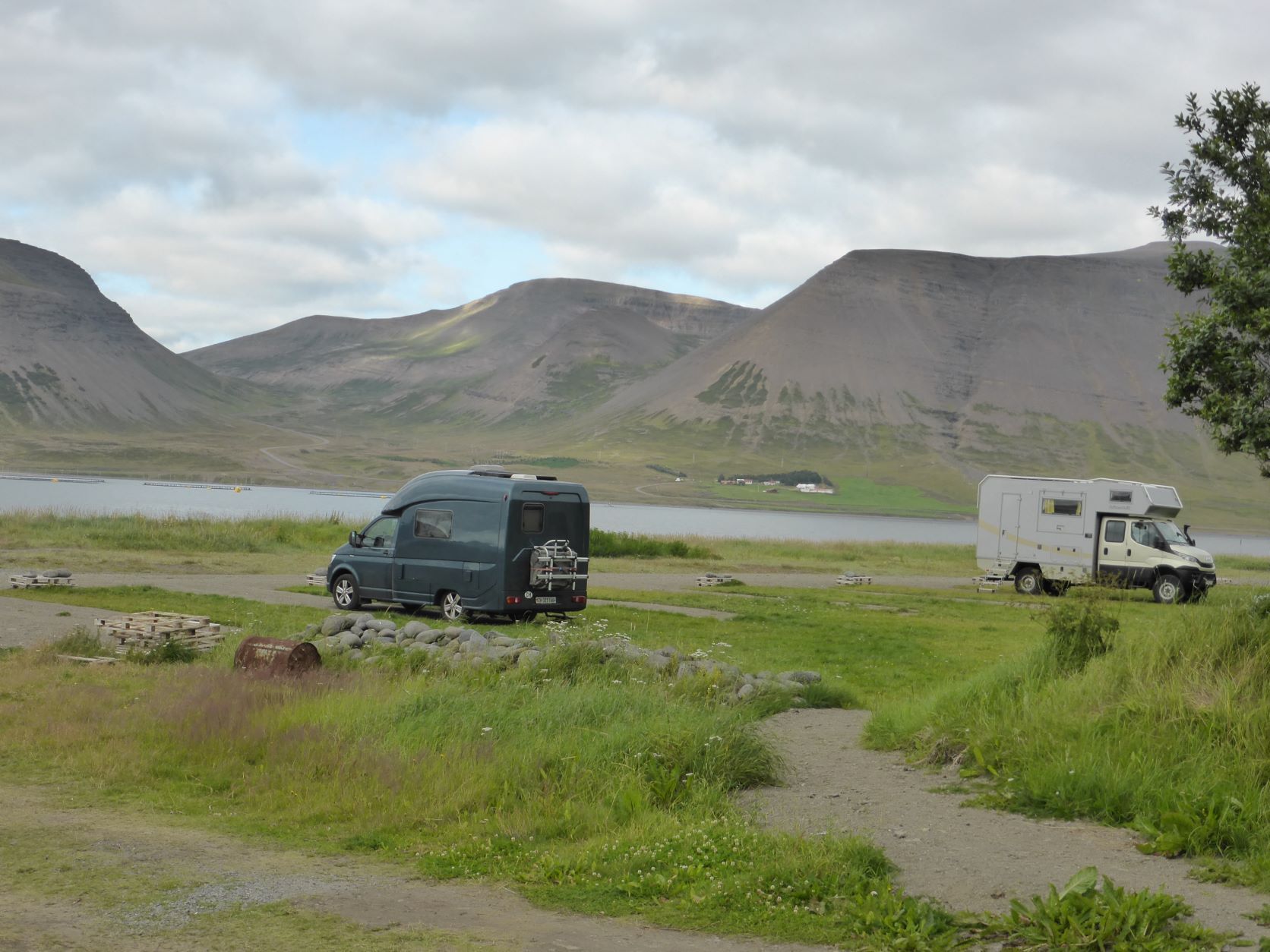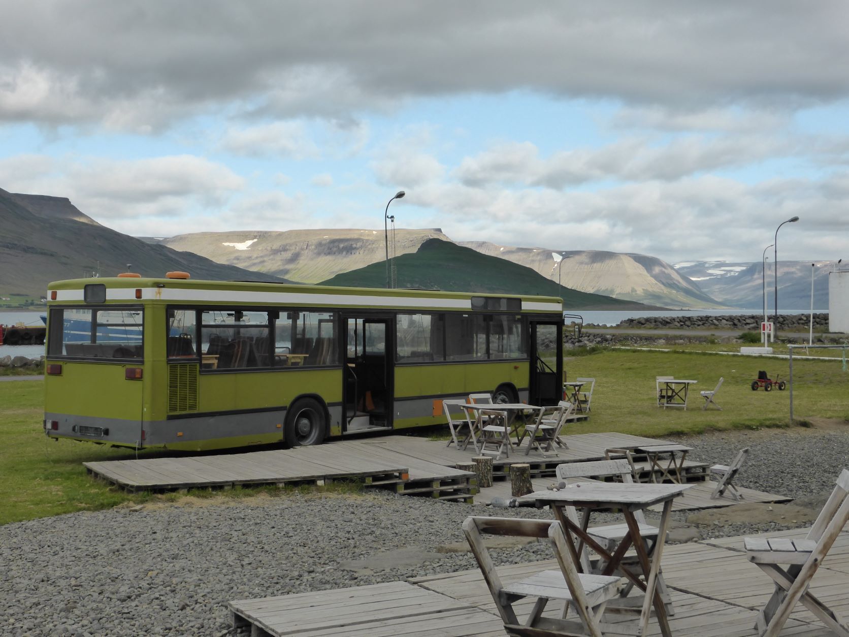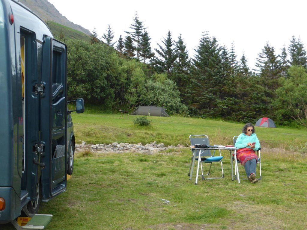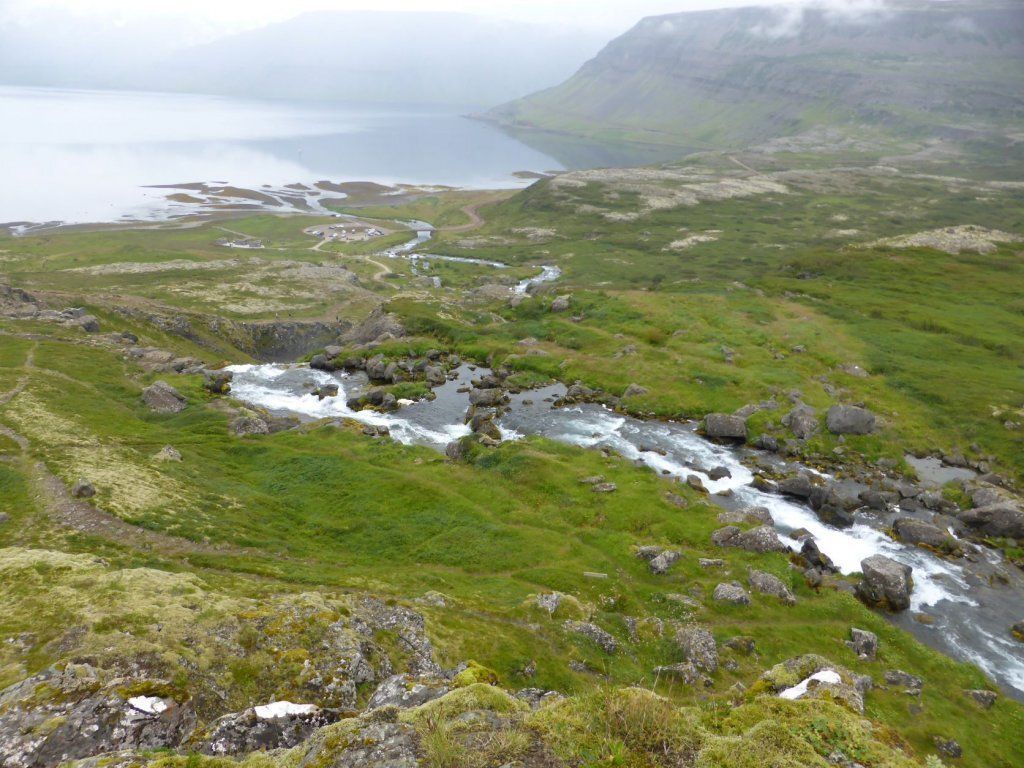 In Isafjördur möchten wir gerne etwas bleiben und wieder wandern, Berge hätte es genug. Aber schon eine Karte zu erhalten gestaltet sich schwierig. Die Reiseagenturen verkaufen lieber grössere Touren. Dann erkennen wir, dass es auch schwierig ist, weil die Hänge mehr Schutt und Kies sind. Am Bach finden wir einen schönen Platz und können sogar draussen sitzen.