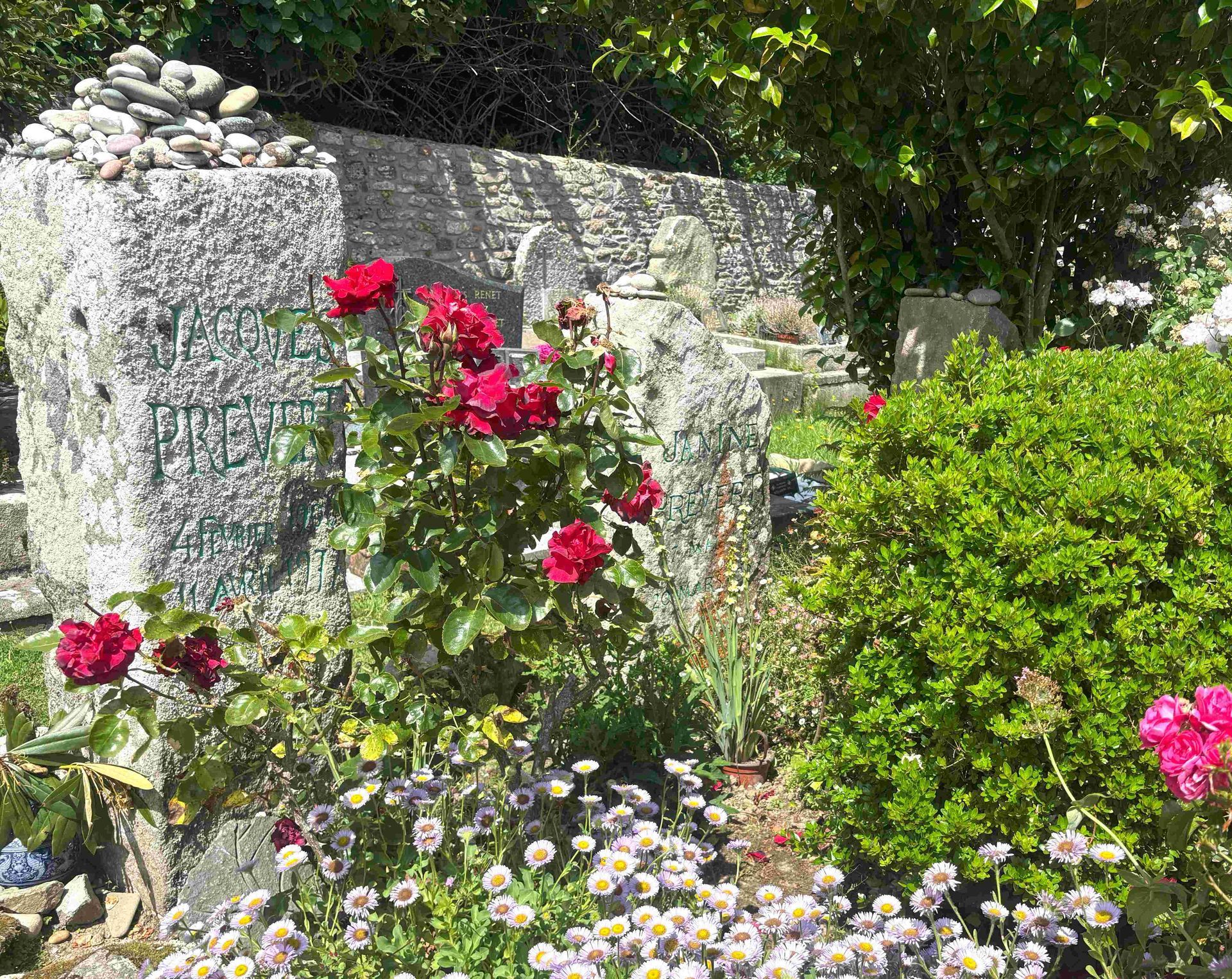 Von unserem schönen Platz am Meer fahren wir weiter nach Omonville-la-Petite. Da entdecke ich einen Wegweiser zum Haus von Jaques Prévert. Im Seminar hatten wir die Gedichte dieses Dichters gelesen und das hatte mich tief beeindruckt. Von 1970 bis 1977 lebte er in diesem Haus mit einem wuchernden Garten und einem sehr hellen Atelier. In einem Film wird sein Leben gezeigt und mir werden die Zusammenhänge nahe gebracht, die ich vergessen hatte. Prévert war im 1. Weltkrieg, wurde dann Anarchist, floh in den Süden Frankreichs während des 2. Weltkrieges. Bekannt wurde er als Autor für Filme wie «Die Kinder des Olymp» und «Der Glöckner von Notre Dame». Er starb in seinem Atelier an Lungenkrebs, er hatte sein Leben lang geraucht, nie sah man ihn ohne Glimmstängel.