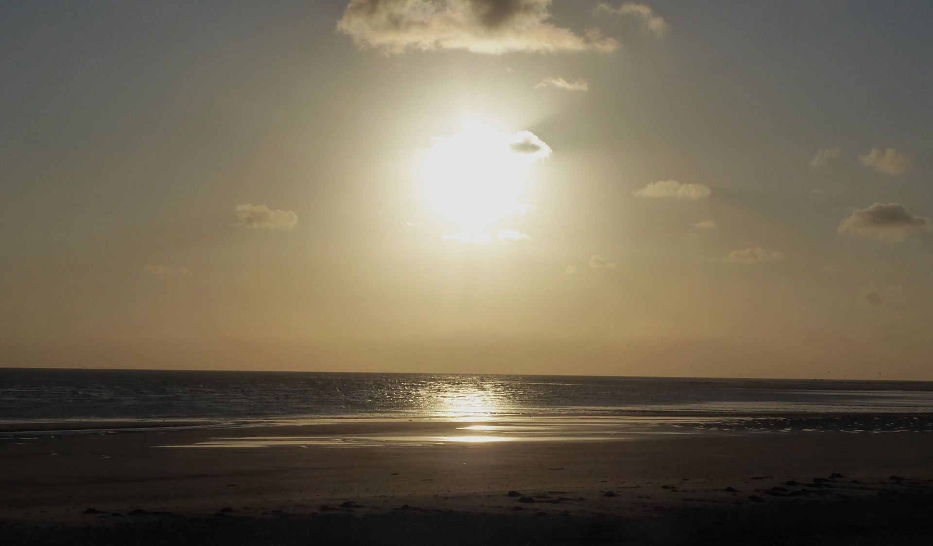 Am andern Tag ist es grau und trüb und es regnet immer wieder. Hans verkleinert weiter und fügt dann die Texte und Fotos in die Reisehomepage ein. Ich lese dazwischen ein Buch. Als ich am Meer die Flut anschauen möchte, vereitelt eine Regenwand mein Vorhaben. Dann endlich, kurz vor Mitternacht, sind alle Fotos hochgeladen und Fehler ausgeräumt. Wir steigen müde und glücklich ins Bett.