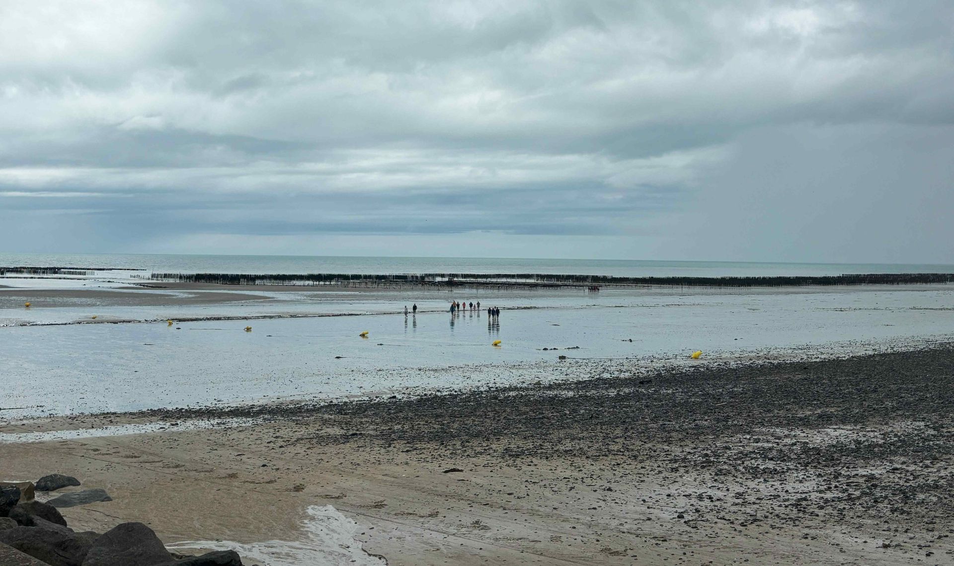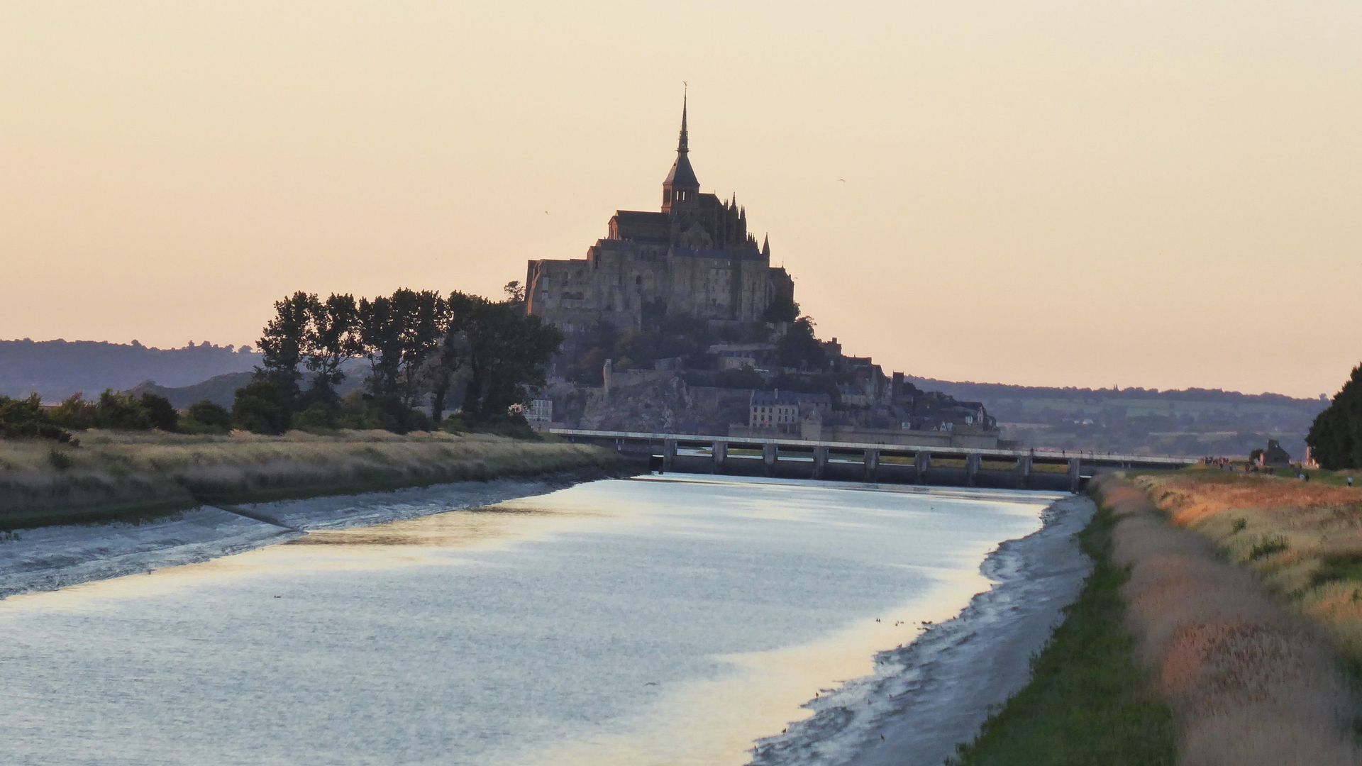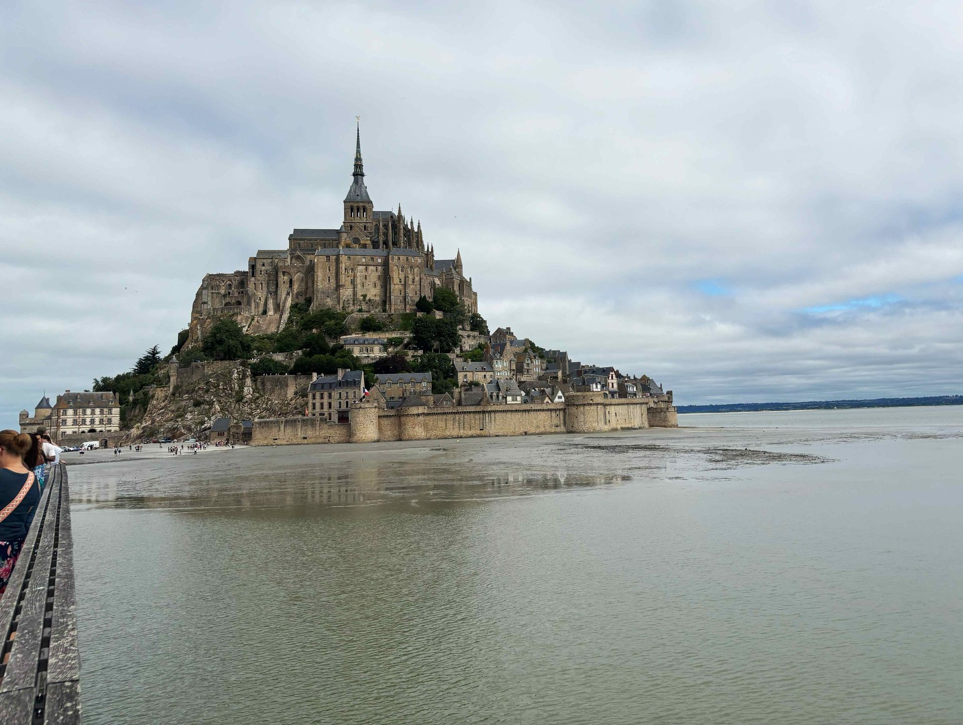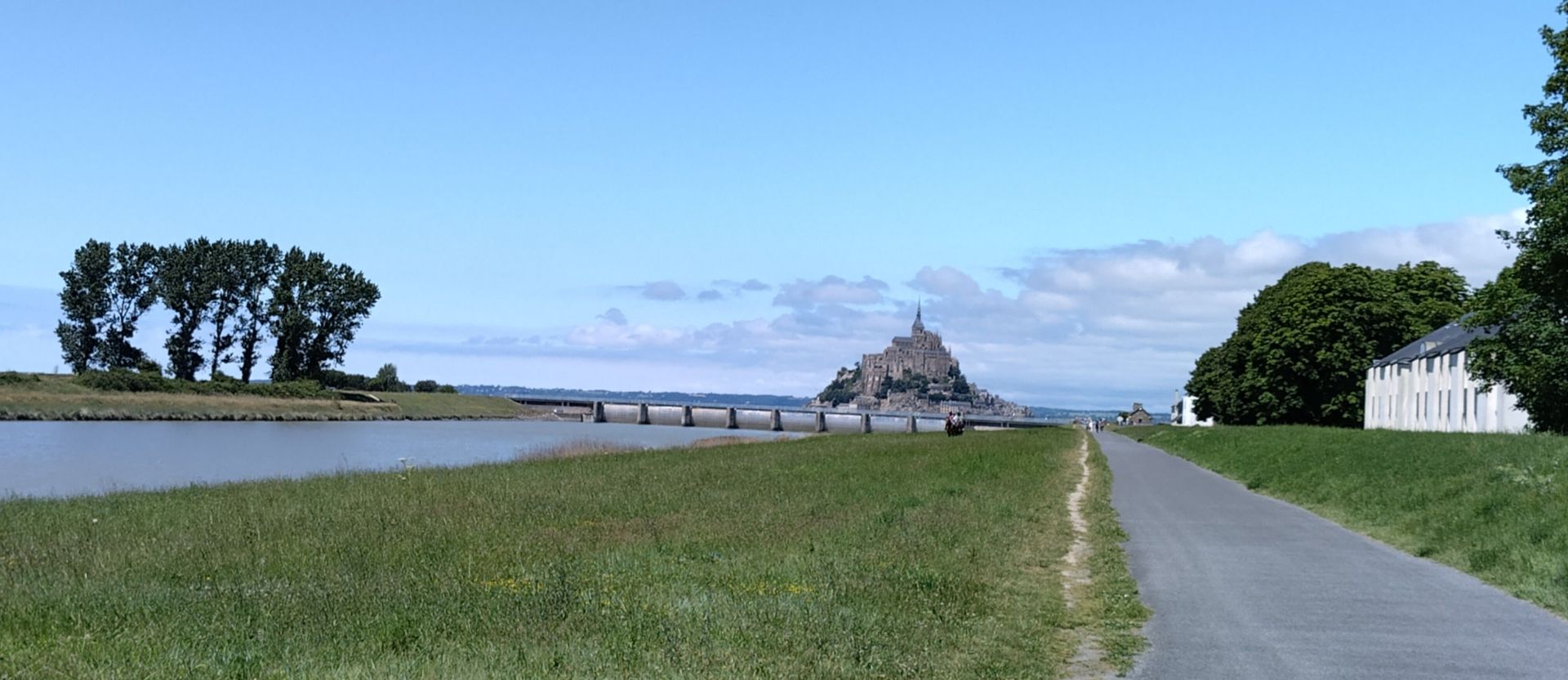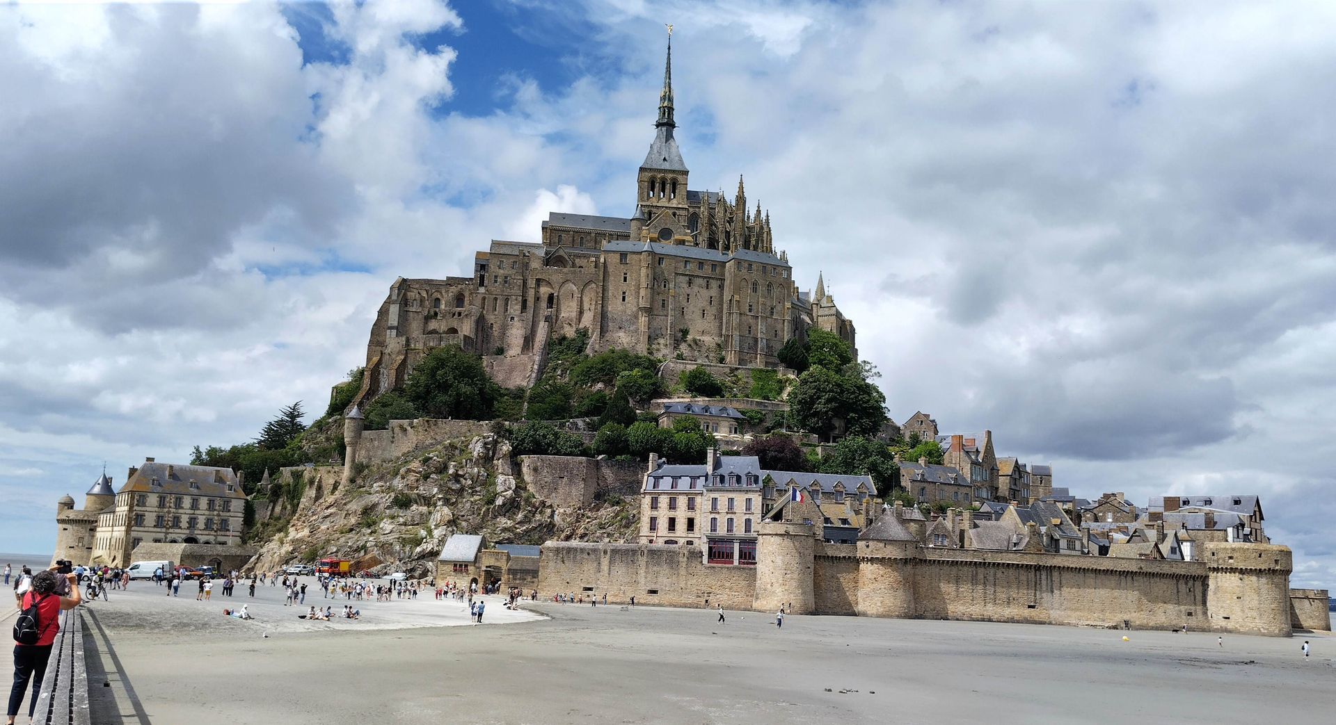 Auf zum Mont-Saint-Michel, ein Muss auf unserer Reise. Nachdem wir bei Leclerc Brico einen neuen Tritt für 6 Euro erstanden haben, finden wir in Beauvoir einen Stellplatz, 5 km entfernt vom Berg unserer Begierde. Wir wandern 45 Minuten dem Fluss Le Couesnon entlang und nehmen dann den Gratis Shuttle Bus. Es ist gerade Ebbe und viele Leute wandern auf dem Schlick.