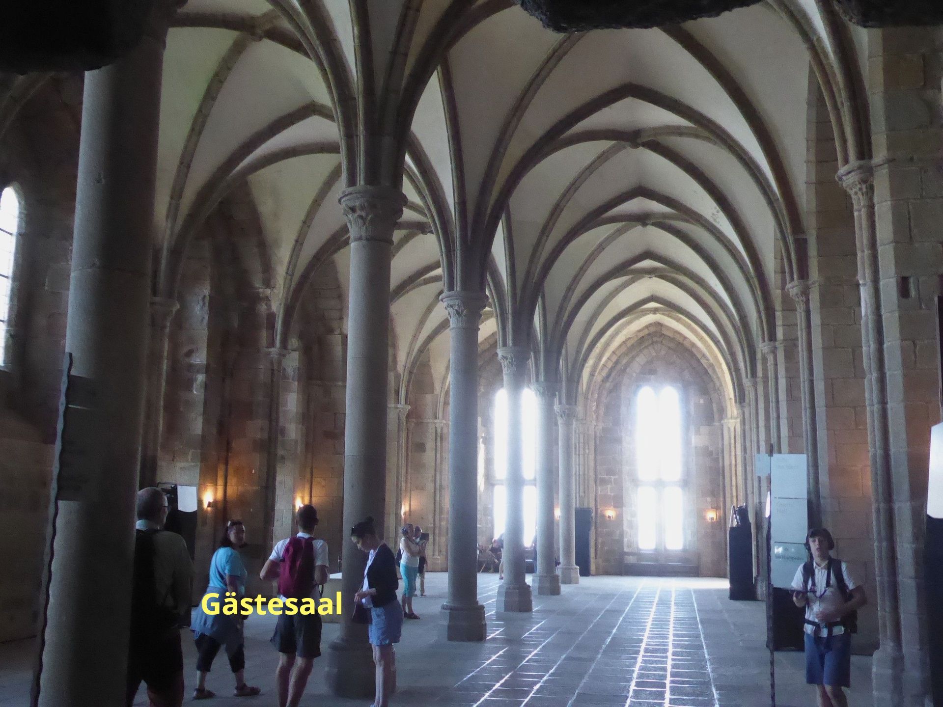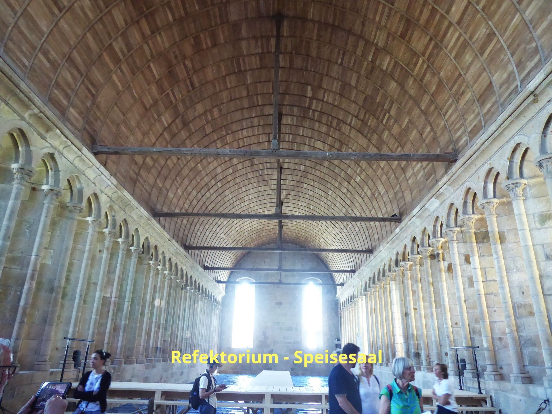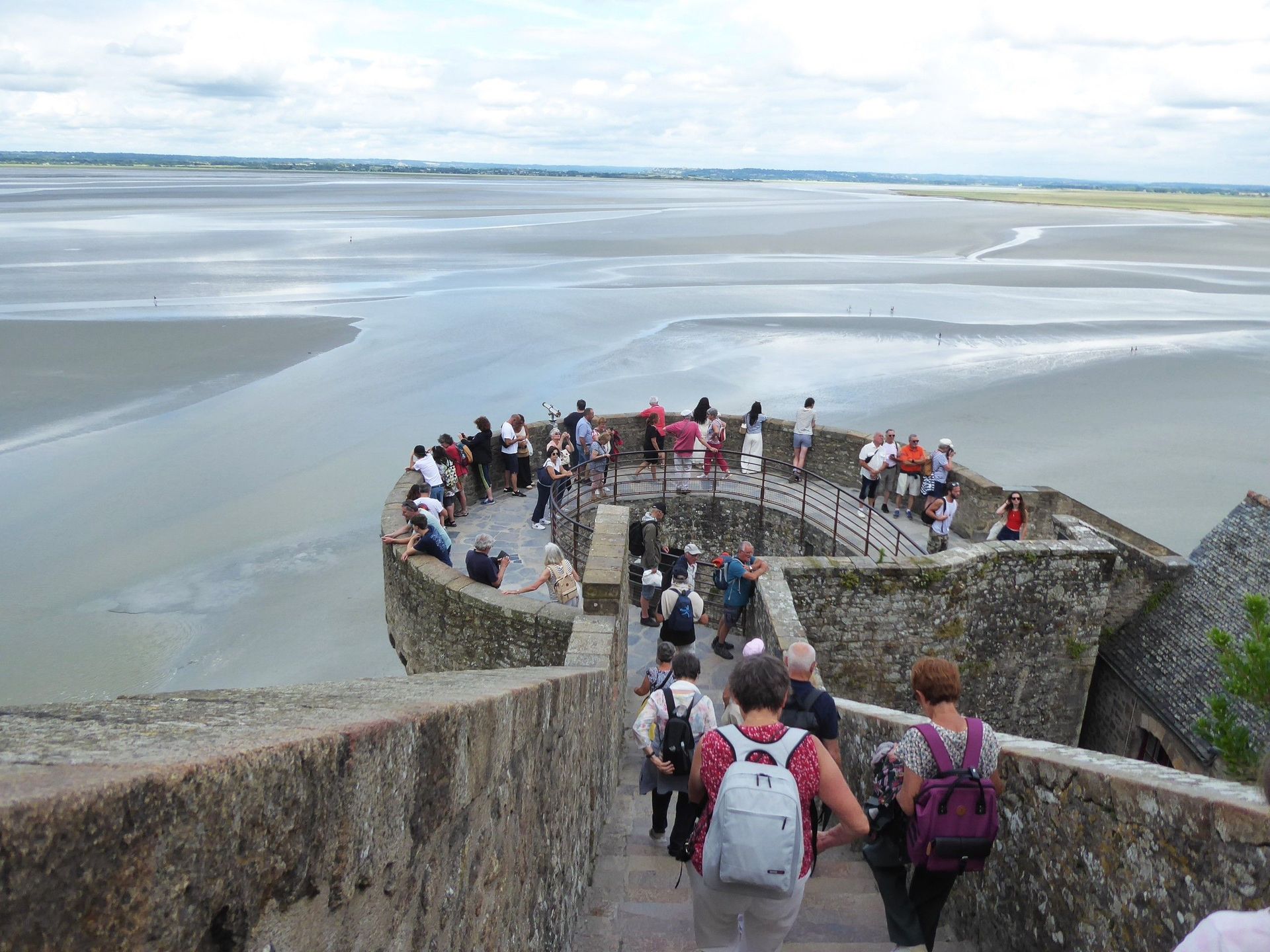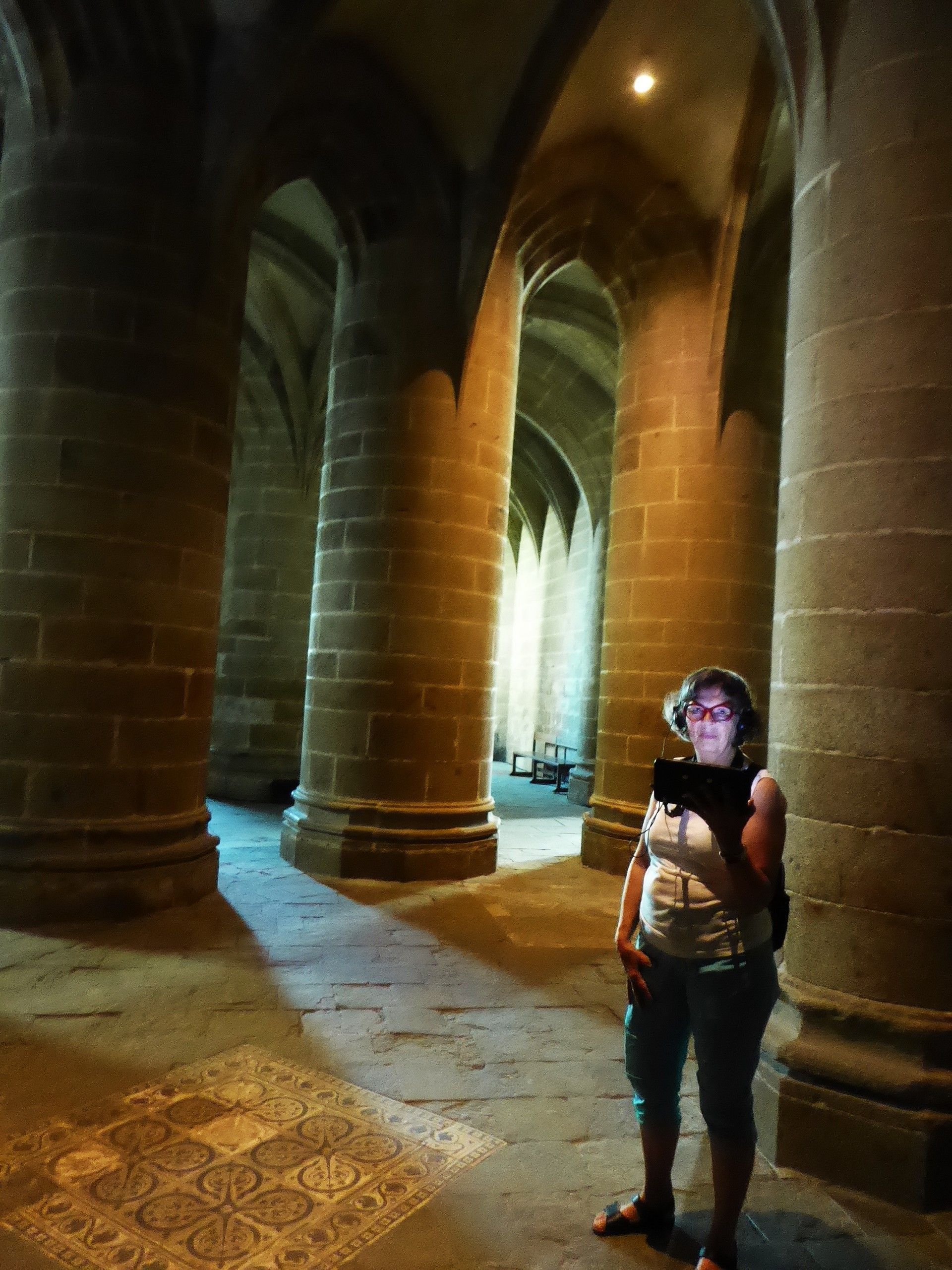 Um die Mittagszeit starten wir die Besichtigung des Mont-Saint-Michel. Der Audioguide ist wirklich gut. Im Jahr 708 erhielt der Bischof Aubert von Avranches vom Erzengel Michael den persönlichen Auftrag, auf dem Felsen ein Kloster zu bauen. Unglaublich, was da in 1300 Jahren alles aufgebaut, zerstört, eingefallen und verbrannt war, aber die Mönche reparierten und erweiterten immer wieder. Es gab auch immer einen grossen Pilgerstrom.