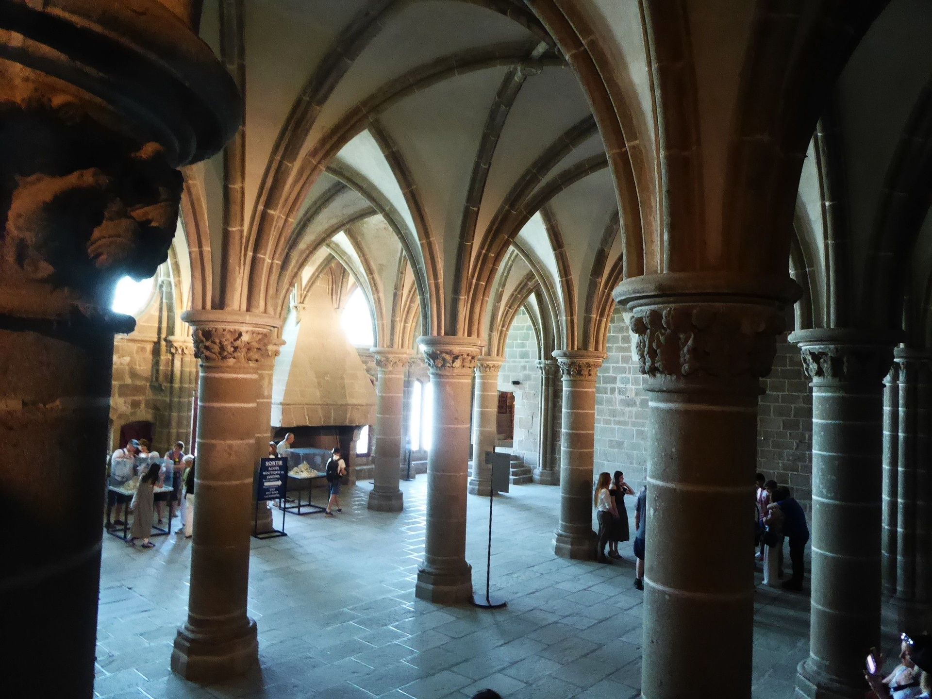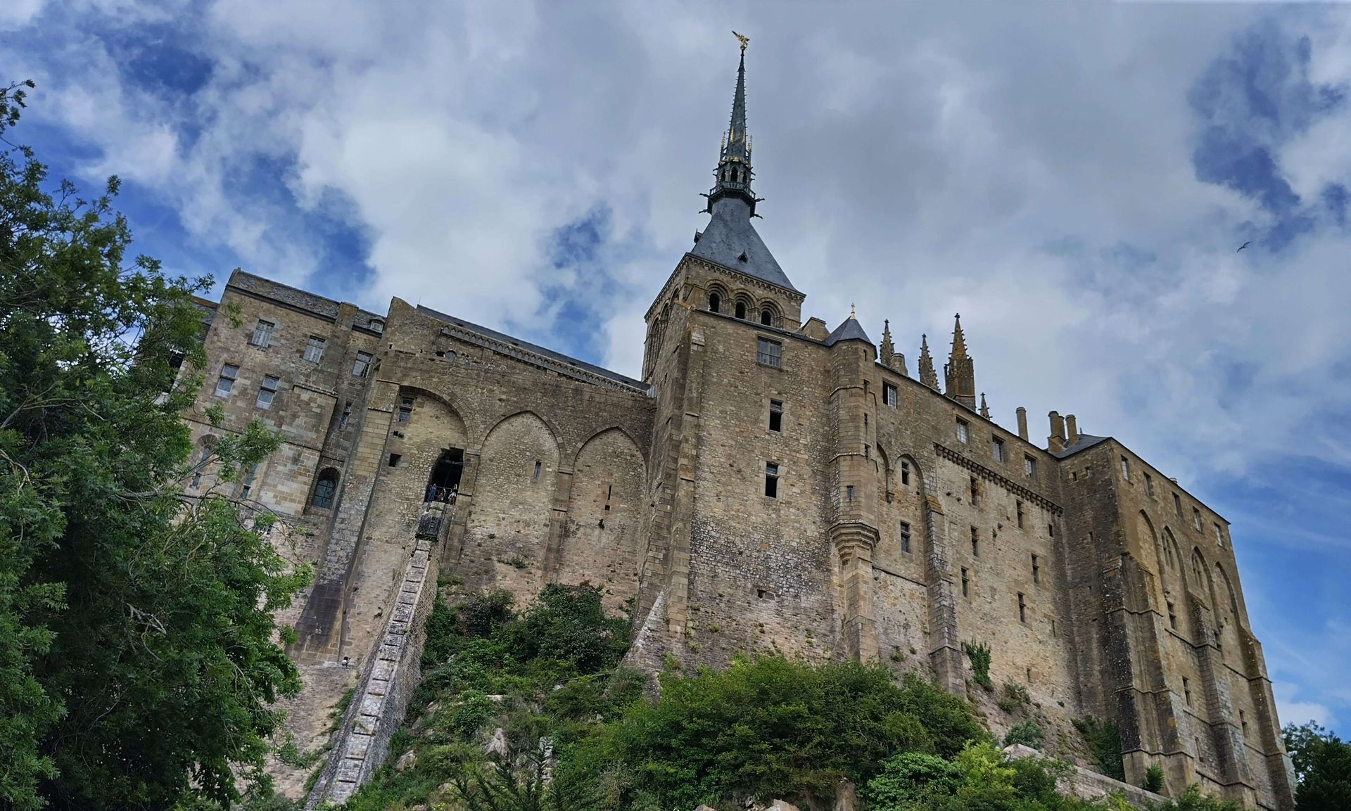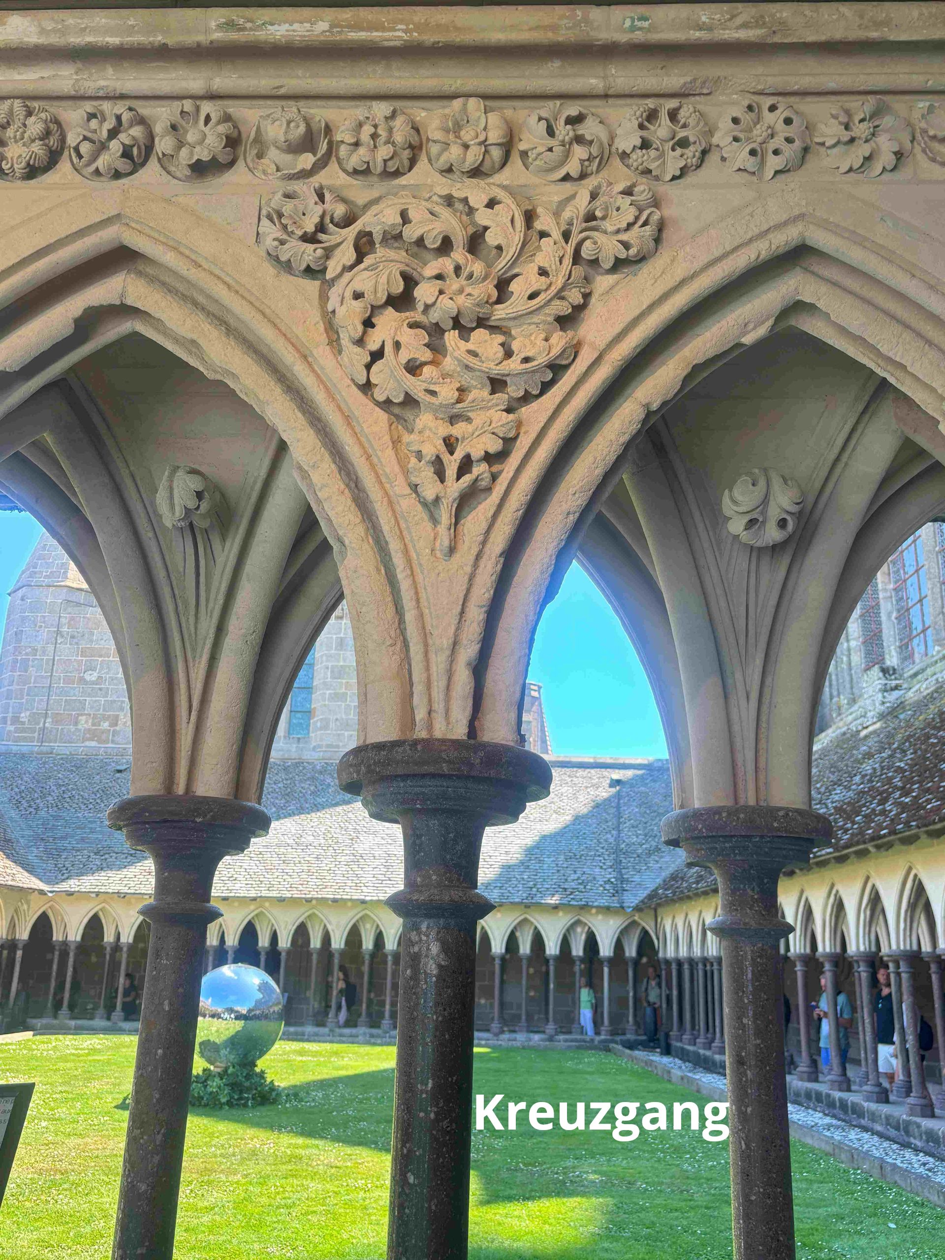 Um die Mittagszeit starten wir die Besichtigung des Mont-Saint-Michel. Der Audioguide ist wirklich gut. Im Jahr 708 erhielt der Bischof Aubert von Avranches vom Erzengel Michael den persönlichen Auftrag, auf dem Felsen ein Kloster zu bauen. Unglaublich, was da in 1300 Jahren alles aufgebaut, zerstört, eingefallen und verbrannt war, aber die Mönche reparierten und erweiterten immer wieder. Es gab auch immer einen grossen Pilgerstrom.