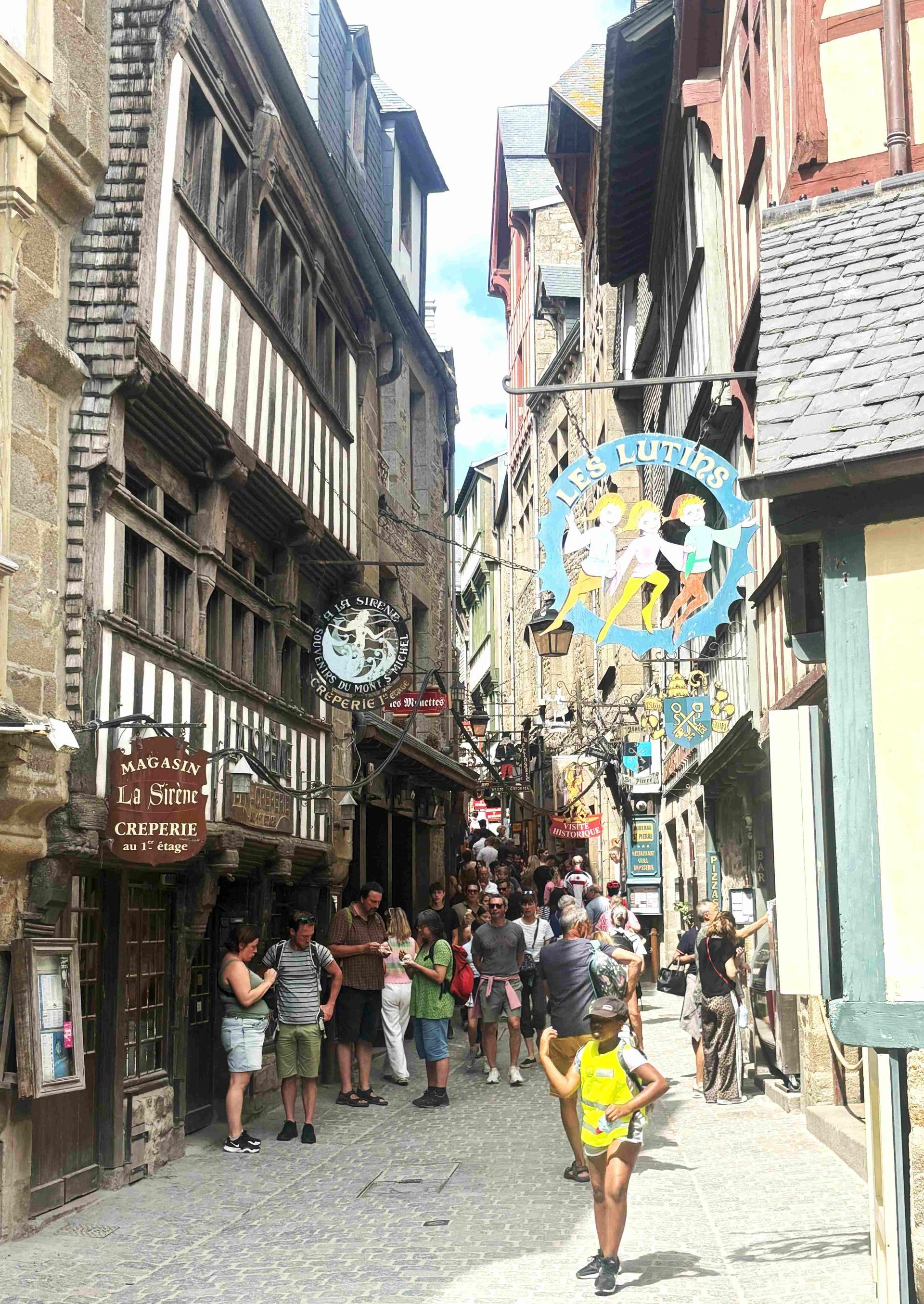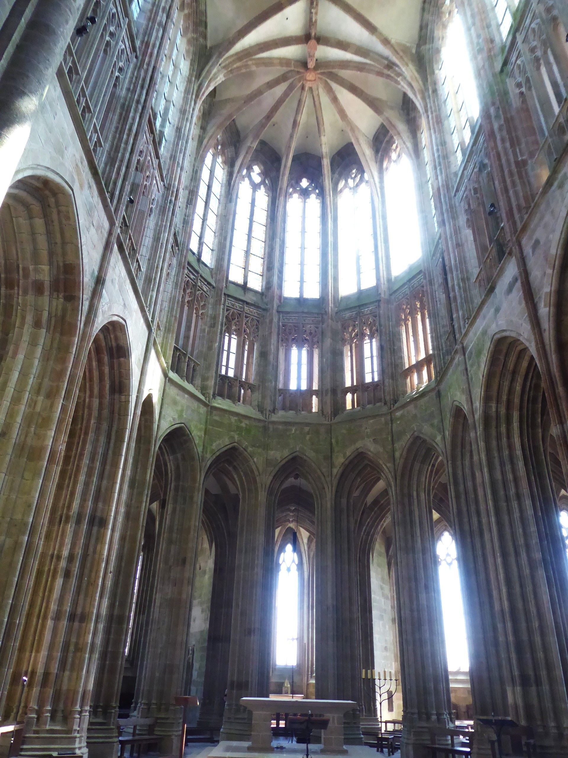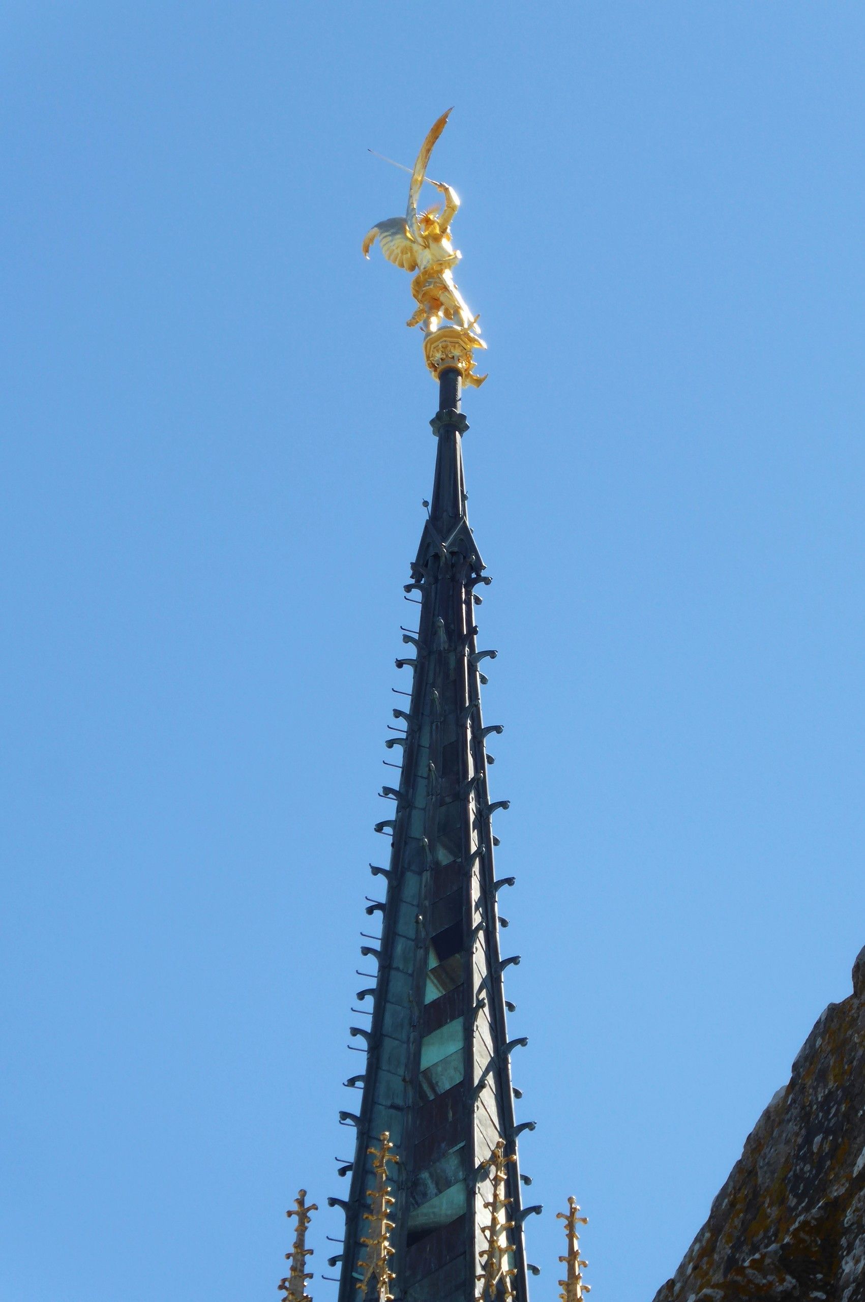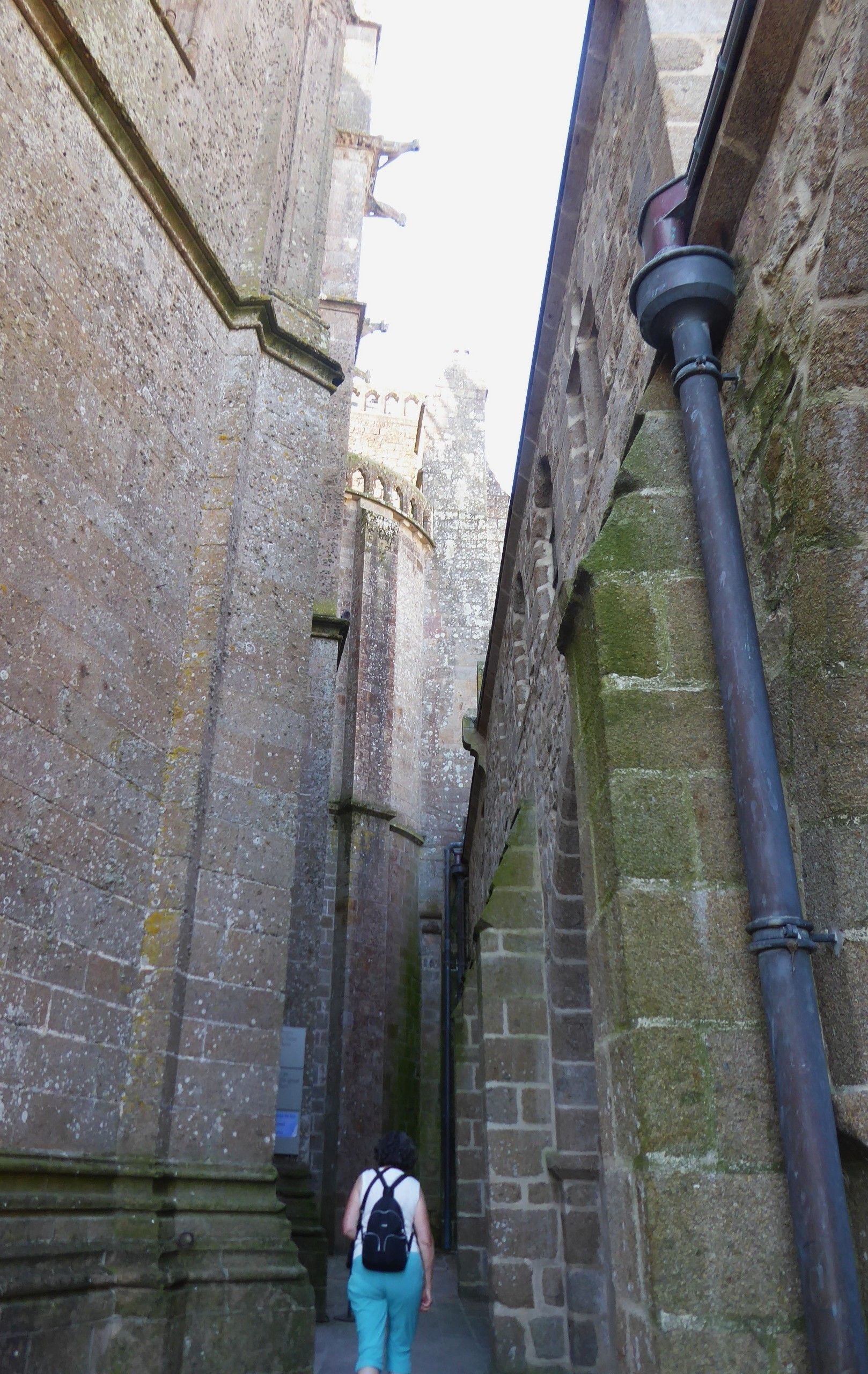Um die Mittagszeit starten wir die Besichtigung des Mont-Saint-Michel. Der Audioguide ist wirklich gut. Im Jahr 708 erhielt der Bischof Aubert von Avranches vom Erzengel Michael den persönlichen Auftrag, auf dem Felsen ein Kloster zu bauen. Unglaublich, was da in 1300 Jahren alles aufgebaut, zerstört, eingefallen und verbrannt war, aber die Mönche reparierten und erweiterten immer wieder. Es gab auch immer einen grossen Pilgerstrom.