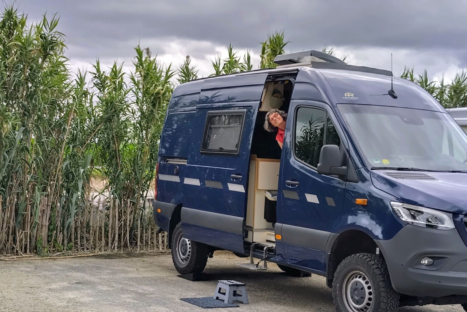 Wir werden nicht ganz fertig mit dem Reisebericht. Auf dem nächsten Campingplatz werden wir sehr herzlich empfangen. Der Gärtner würde noch einen Ast absägen, damit der Bänz unter die Pinie passt. Der Platz ist sehr schräg, dafür aber am Schatten. Wir bekommen zusätzliche Keile und einen guten Einstieg, weil unser Tritt zerbrochen ist. Das ist ein toller Service.